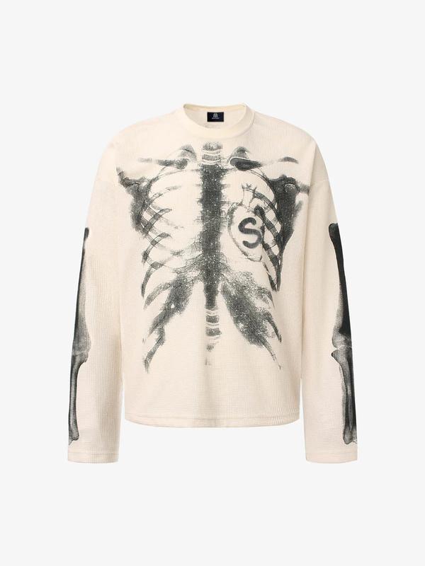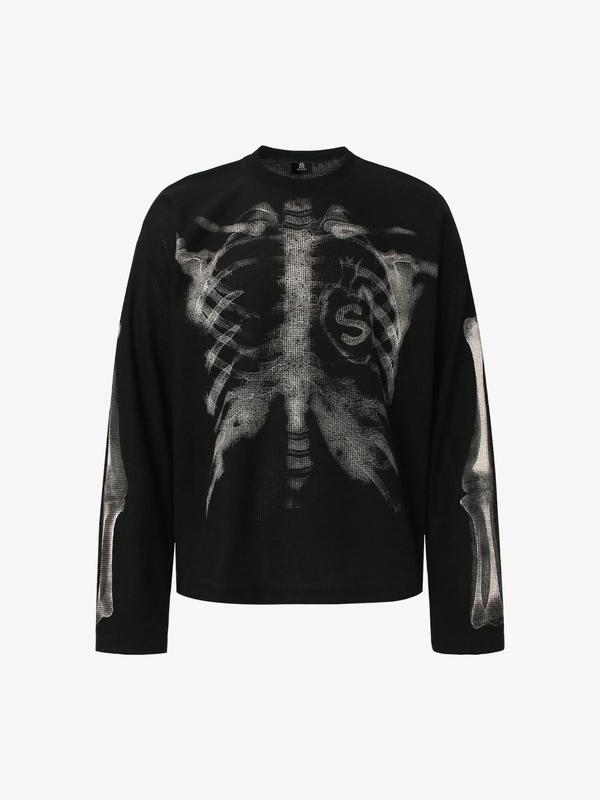 • Design Elements: Ribcage print on the front and sleeves, skull motif integrated into the design