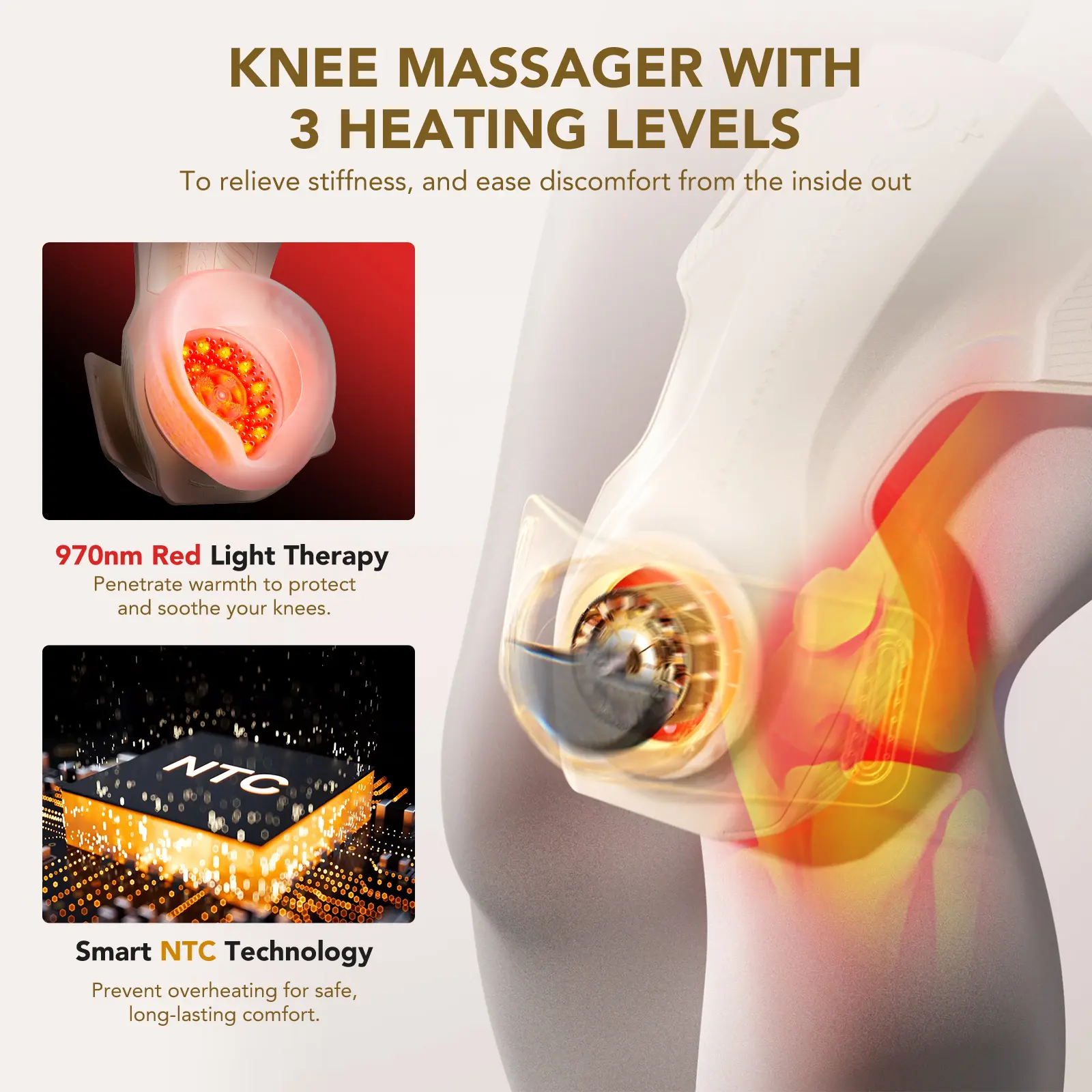 ·【Knee Massager with 3 Heating Levels】Equipped with a 970nm warming light, this knee massager delivers gentle, soothing heat to relax your knees. Choose from 3 adjustable levels (113°F/122°F/131°F) with fast 2-second warming. Designed to ease daily tension and support comfort, while the NTC smart sensor keeps the temperature stable to prevent overheating for safe, long-lasting use.