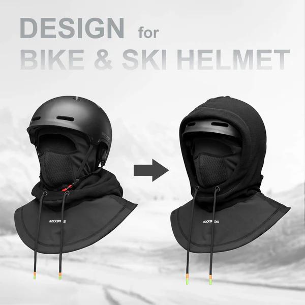 Hood fits great over most helmets. The drawstrings allow you to winch the hod down on your goggles if you have them. Wear it daily on my winter commute.