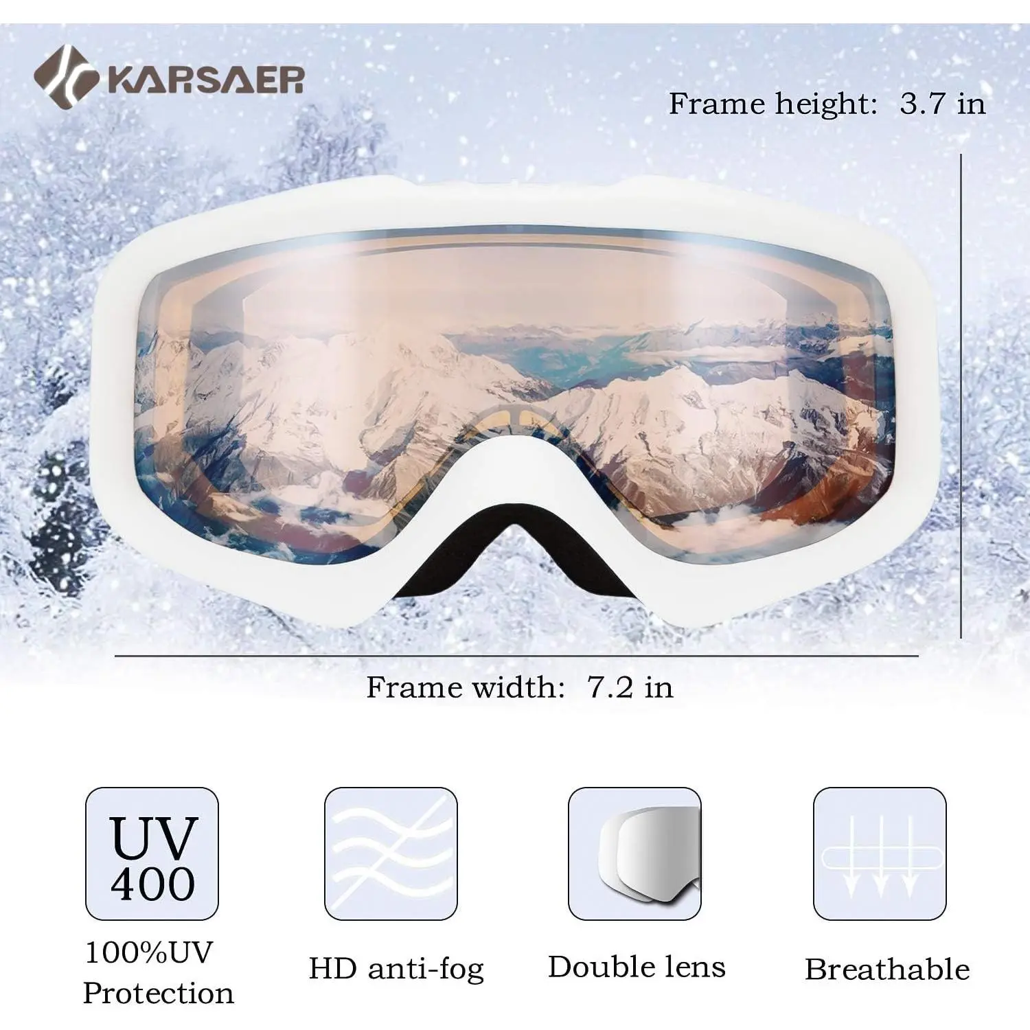 ·【Customer Satisfaction】- All Karsaer Customer satisfaction is our priority. If you have any problem on product, shipping or return, please contact us. We will help you solve the problem at the first time. Bring our ski goggles to play in the snow season!