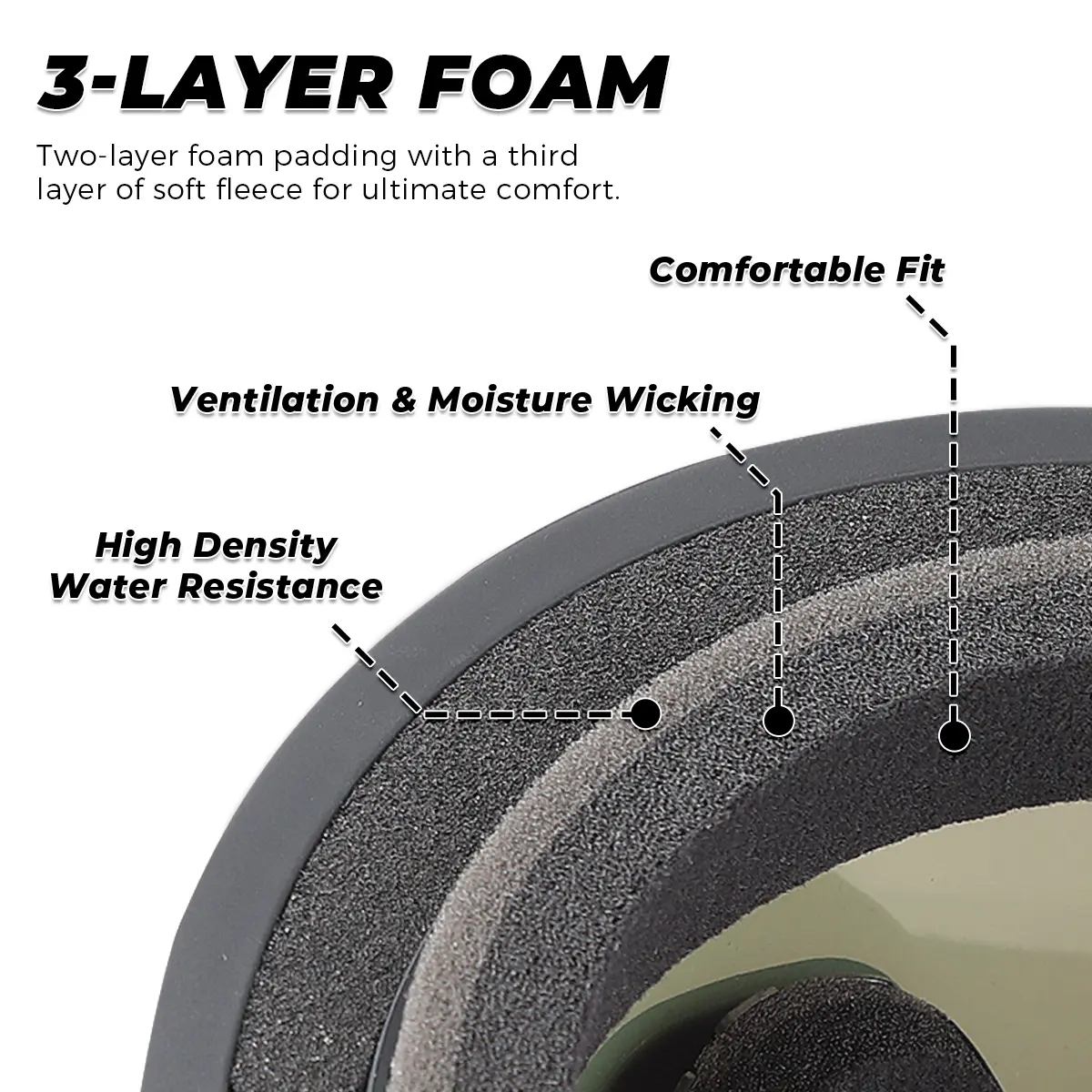 4.Comfortable Fit – Soft triple-layer foam and adjustable strap ensure a secure, pressure-free fit for long wear.