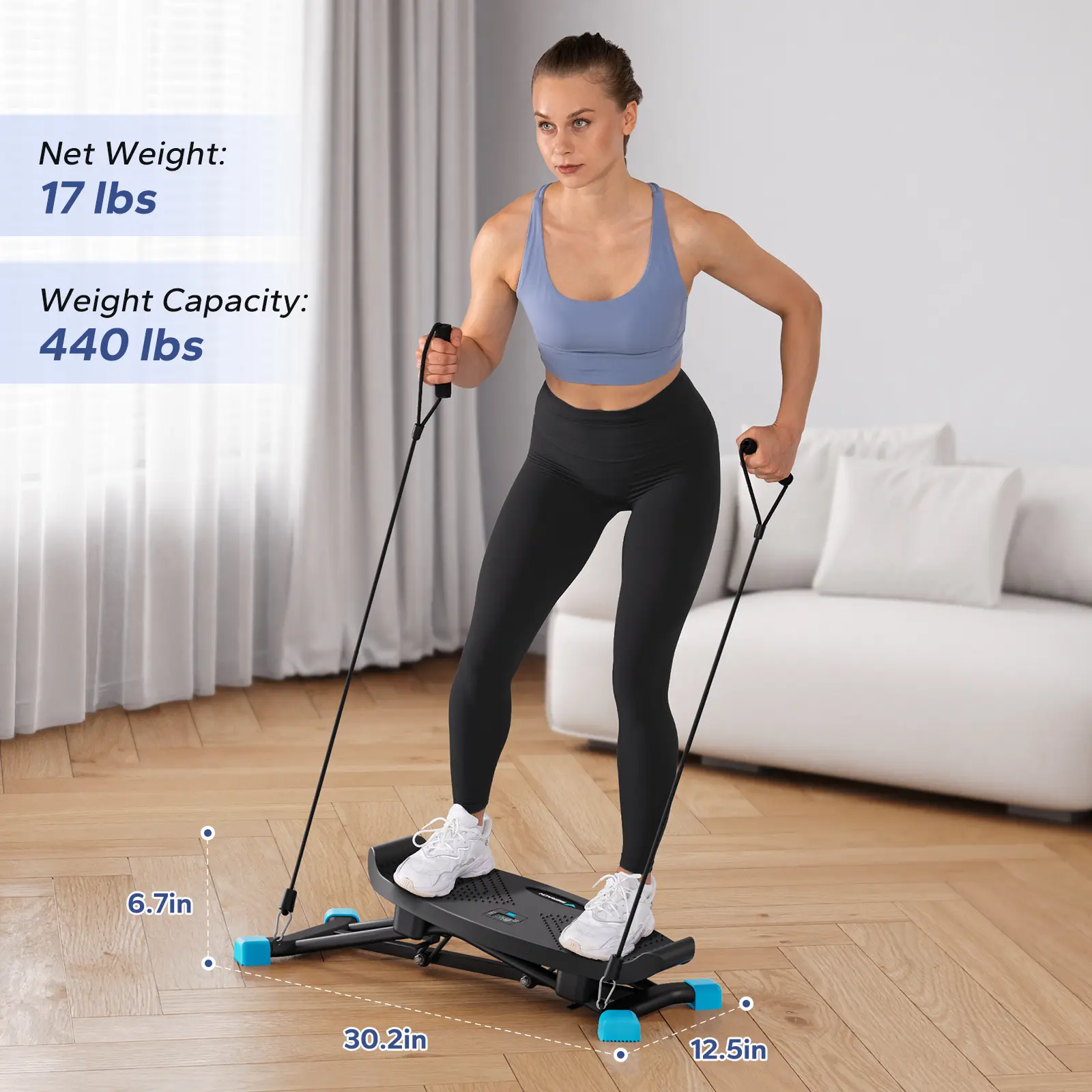 Enhance your workout with included resistance bands, adding variety and resistance to your routines.
