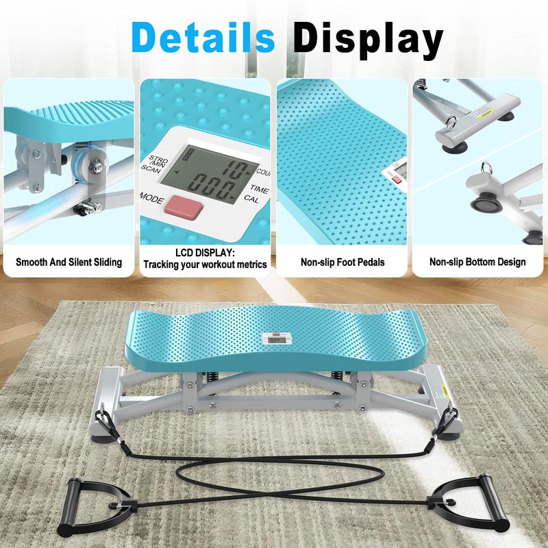 It slides side to side. Just wanted it to burn off extra energy for cold winter months. Great for ppl with adhd.