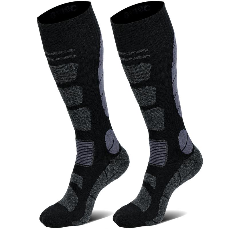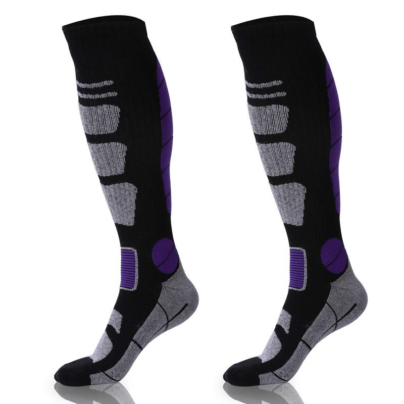 ·【SOFT & LIGHTWEIGHT & DURABLE】 The length of the stocking socks over the calf, medium thickness which can reduce leg pressure and promote blood circulation. In exercise, especially when skiing, the feet often need more cushioning than usual. Socks have thick loops on the forefoot, heel and toes which are designed to minimize the friction between the feet and the boots and reduction of the feet during sports or daily activities. Designed for shock to prevent blisters and soreness in your feet.
