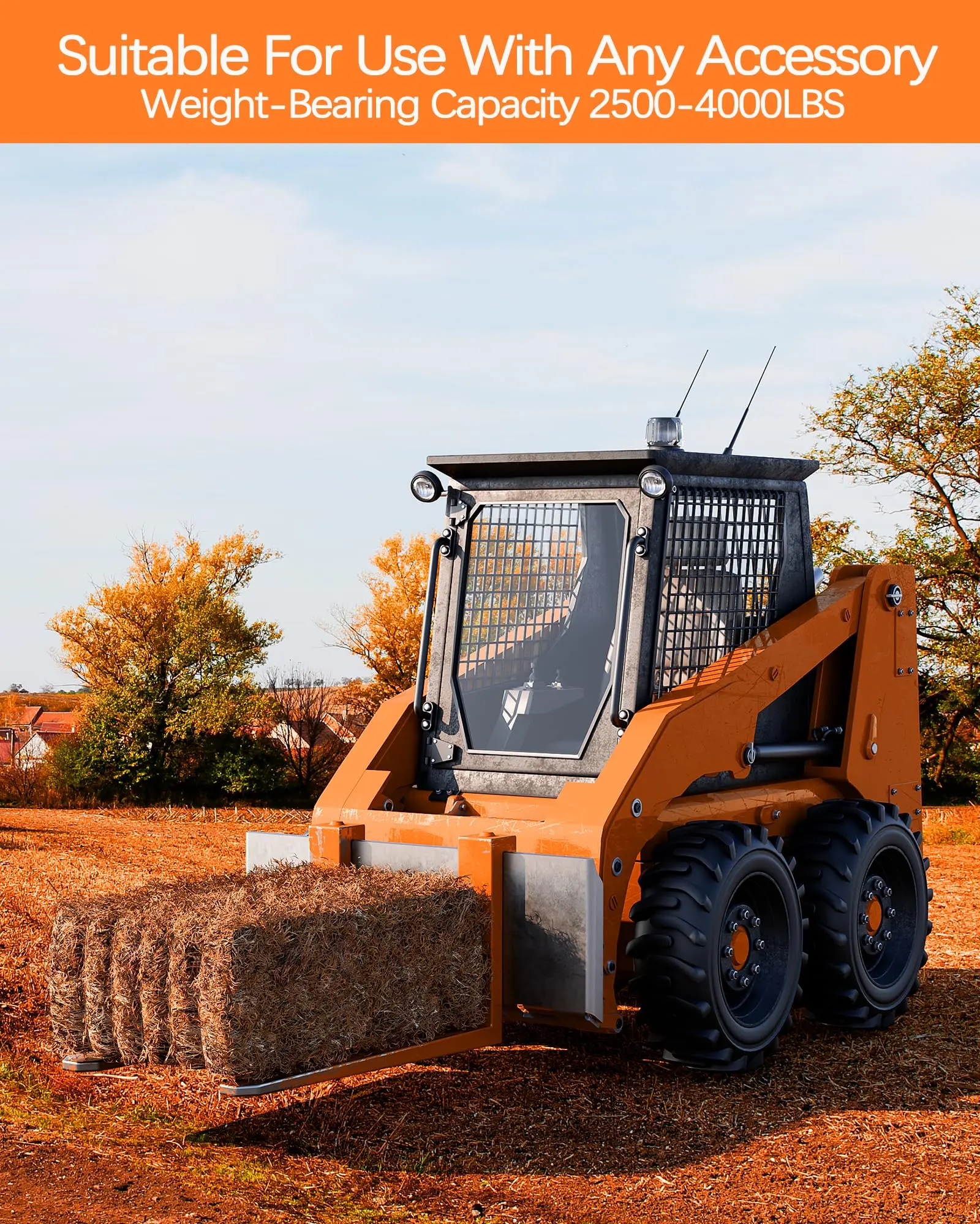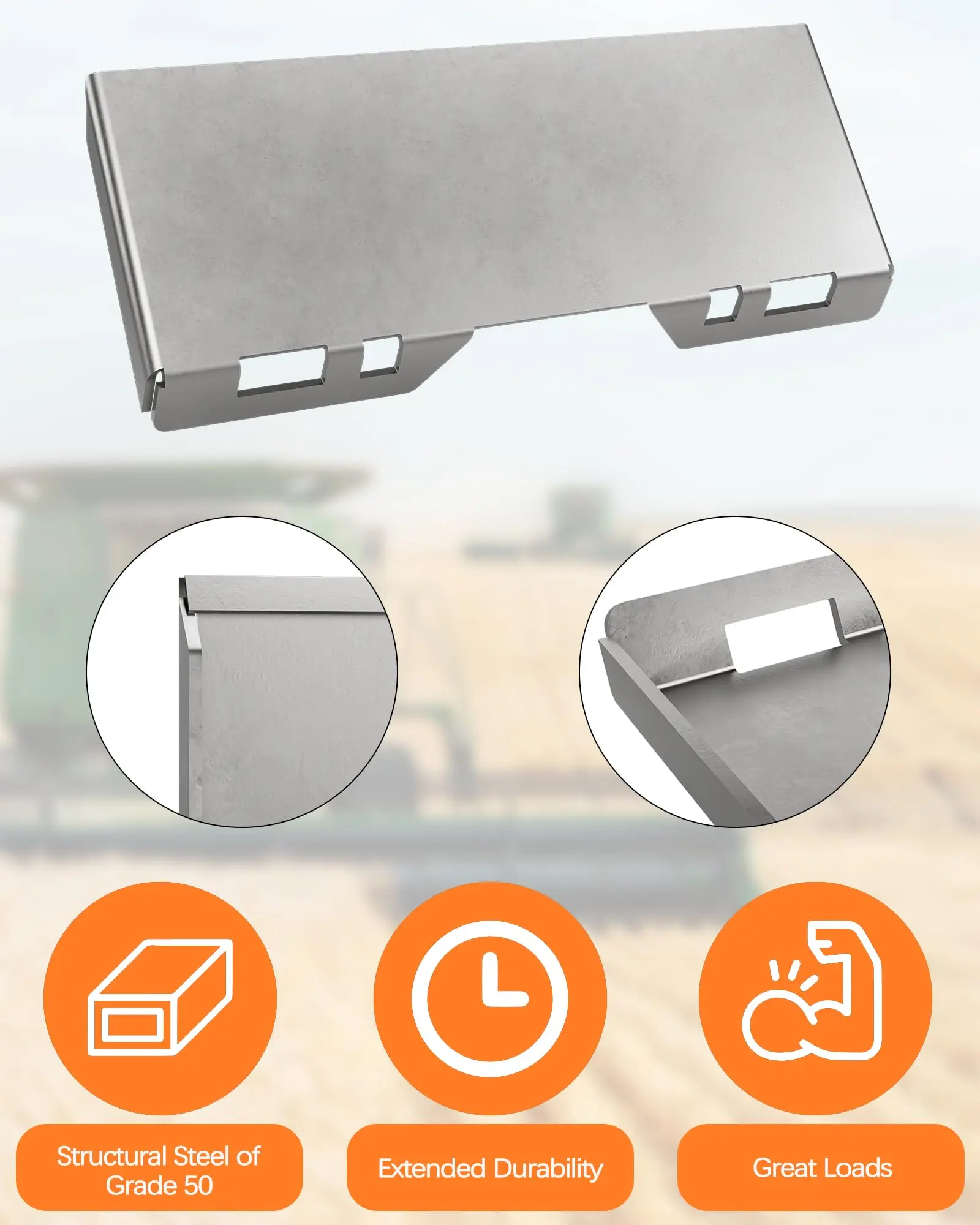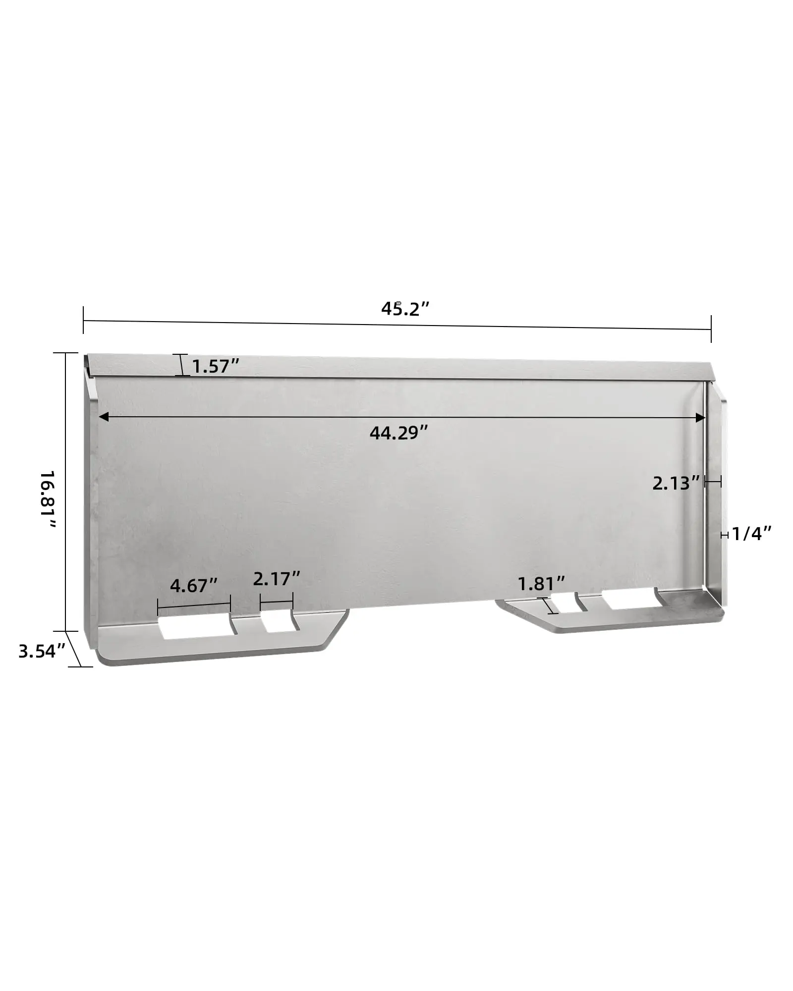 · Universal Compatibility: The skid steer attachment plate offers universal compatibility with loaders. With an outer width of 45.2'' and inner width of 44.29'', it easily fits a wide range of equipment.