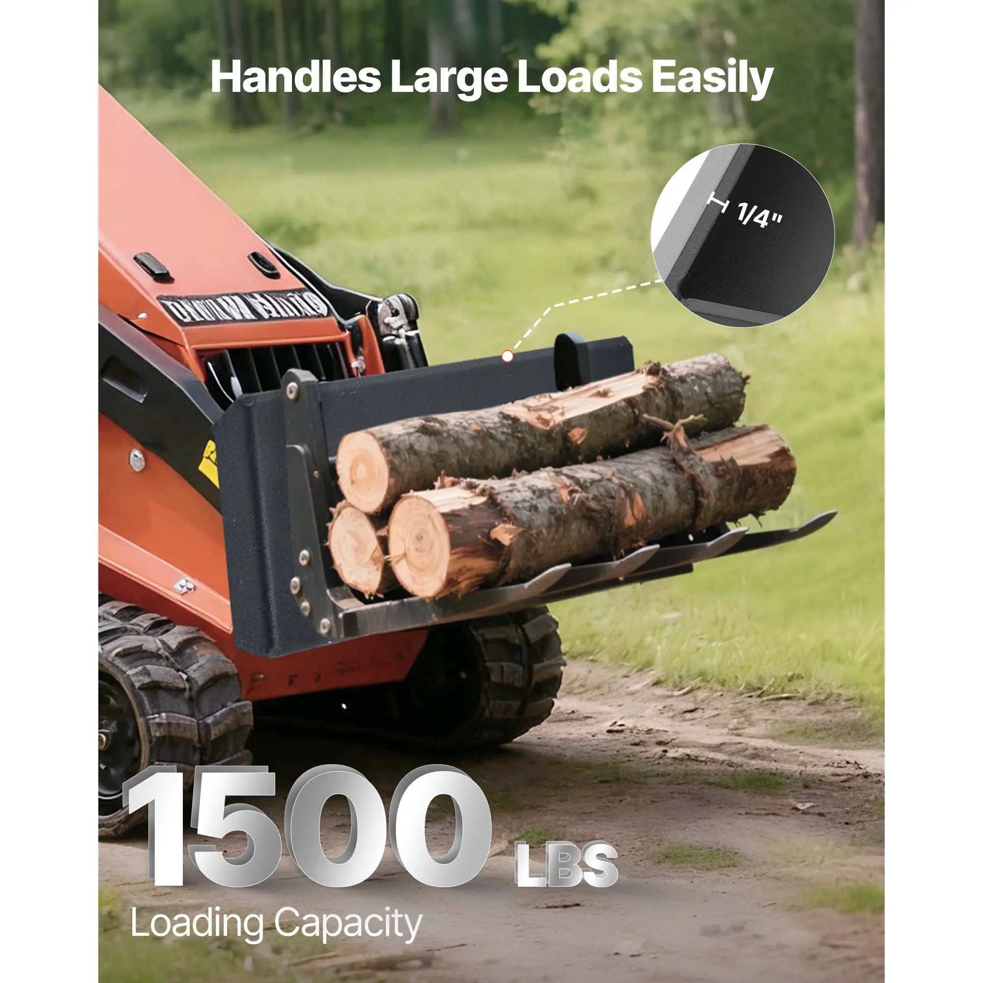 • Heavy-Duty Construction: Built from 50-grade steel with a 1/4-inch thickness, our skid steer attachment plate supports up to 1500 lbs. It offers exceptional wear resistance to handle demanding, heavy-duty tasks.
