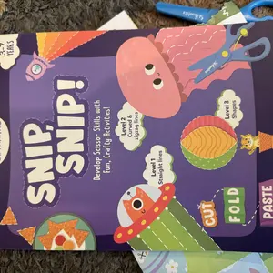 Awesome crafting book great for long car rides to entertain your child. Also great to change your daily routine and spend more time with your child watching them do their crafts :) easy to do and scissors are 100% child proof