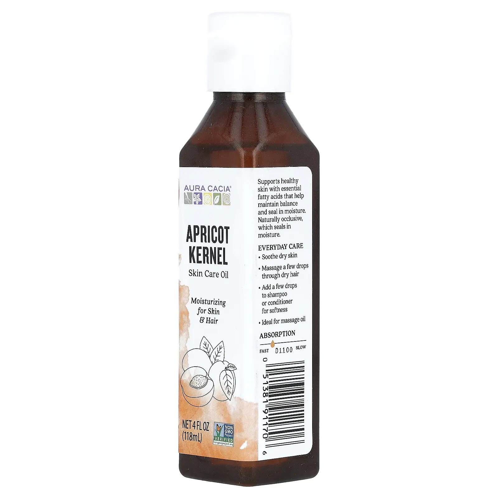 Aura Cacia Skin Care Oil, Apricot Kernel, 4 fl oz (118 ml)
