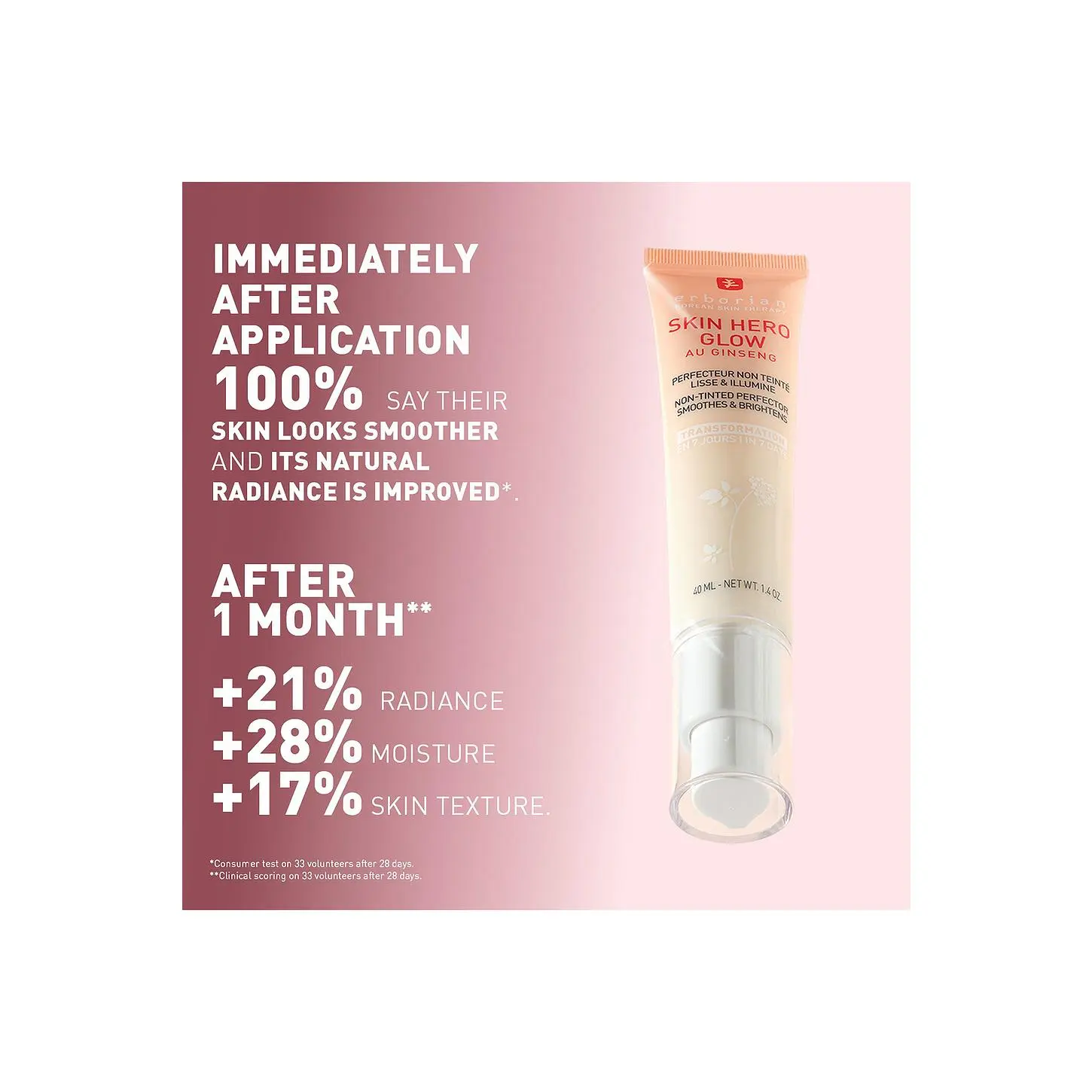 ·Instantly: Skin Hero Glow hydrates, makes the skin appear smoother, and gives a natural glow to your skin for a glass-skin finish