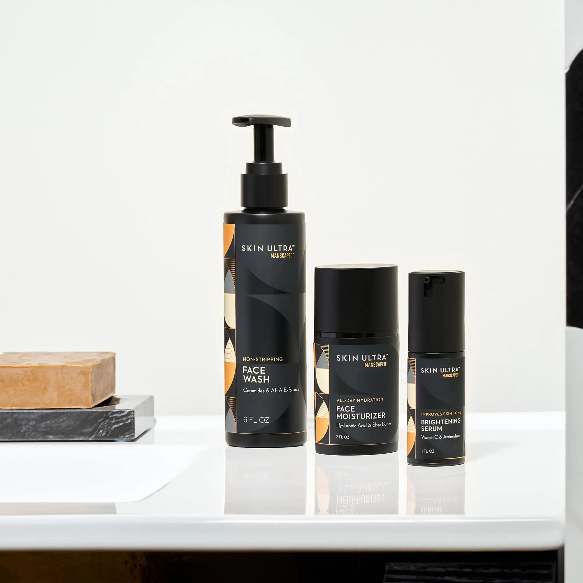 | Ingredients | Face Wash: Aqua/Water/Eau,Sodium Cocoyl Glutamate,Sorbeth-230 Tetraoleate,Cocamidopropyl Betaine,Cocamidopropyl Hydroxysultaine,Gluconolactone,Glycerin Carbomer,Ceramide Ap,Ceramide Eop,Ceramide Np,Cholesterol,Citric Acid,Decyl Glucoside,Disodium Edta,Ethylhexylglycerin,Parfum/Fragrance,Phytosphingosine,Sodium Lauroyl Lactylate,Sorbitan Laurate,Xanthan Gum,Peg-150 Distearate,Phenoxyethanol,Hexyl Cinnamal,Limonene,Linalool Moisturizer: Aqua/Water/Eau,Glycerin,Butyrospermum Parkii (Shea) Butter,Caprylic/Capric Triglyceride,C13-15 alkane,Cetearyl Alcohol,Pentaerythrityl Tetraisostearate,Lauroyl Lysine,1,2-hexanediol,Bisdiglyceryl Polyacyladipate-1 Acrylates/C10-30 Alkyl Acrylate Crosspolymer,Arginine,Betaine,Cetearyl Glucoside,diisostearyl Malate,Glyceryl Dioleate,Hydrogenated Rapeseed Oil,Hydrolyzed Sodium Hyaluronate,Hydroxyacetophenone,Hydroxyethyl Acrylate/Sodium Acryloyldimethyl Taurate Copolymer,Panthenol,Pentylene Glycol,Sodium Acetylated Hyaluronate,Sodium Dilauramidoglutamide Lysine,Sodium Hyaluronate,Sodium Hyaluronate Crosspolymer,Sodium Phytate,Sorbitan Isostearate,Tocopherol,Triolein,Citronellol,Linalool Brightening Serum: Aqua/Water/Eau,Propanediol,Triheptanoin,Ammonium Acryloyldimethyltaurate/Vp copolymer,Niacinamide,Sodium Citrate 3-o-ethyl Ascorbic Acid,Algin,Beta-glucan,Caprylhydroxamic Acid,Capryloyl Glycerin/Sebacic Acid copolymer,Carbomer,Diheptyl succinate,Glycyrrhiza Glabra (Licorice) Root Extract,Simmondsia Chinensis (Jojoba) Seed Oil,Tocopheryl Acetate,Benzoic Acid,Potassium sorbate,Sorbic Acid,Citral,Linalool |