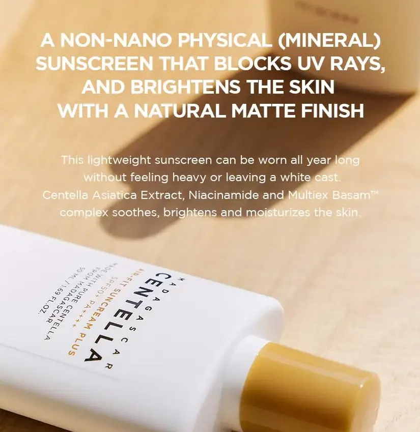 | Ingredients | Centella Asiatica (Gotu Kola) Extract (35.8%),Cyclopentasiloxane,Zinc Oxide,Butyloctyl Salicylate,Titanium Oxide,Propanediol,Benzotriazolyl Dodecyl P-Cresol,Coptis Chinensis Root Extract,PEG-10 Dimethicone,Niacinamide,Disteardimonium Hectorite,Butylene Glycol,Magnesium Sulfate,1,2-Hexanediol,Caprylic/Capric Glycerides,Dimethicone,VP/Hexadecene Copolymer,Polymethylsilsesquioxane,Aluminum Hydroxide,Stearic Acid,Sorbitan Sesquioleate,Triethoxycaprylylsilane,Dimethicone Crosspolymer,Dimethicone/Vinyl Dimethicone Crosspolymer,Dextrin,Theobroma Cacao (Cocoa) Extract,Pelargonium Graveolens Flower Oil,Water,Citrus Aurantium Bergamia (Bergamot) Fruit Oil,Betaine,Scutellaria Baicalensis Root Extract,Polygonum Cuspidatum Root Extract,Glycyrrhiza Glabra (Licorice) Root Extract,Camellia Sinensis Leaf Extract,Sodium Hyaluronate,Rosmarinus Officinalis (Rosemary) Leaf Extract,Chamomilla Recutita (Matricaria) Flower Extract,Rosa Damascena Flower Oil,Pentylene Glycol,Madecassoside,Citronellol,Geraniol,Linalool |