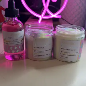 Includes: 8oz Body Butter, 8oz Sugar Scrub 4oz Body Oil