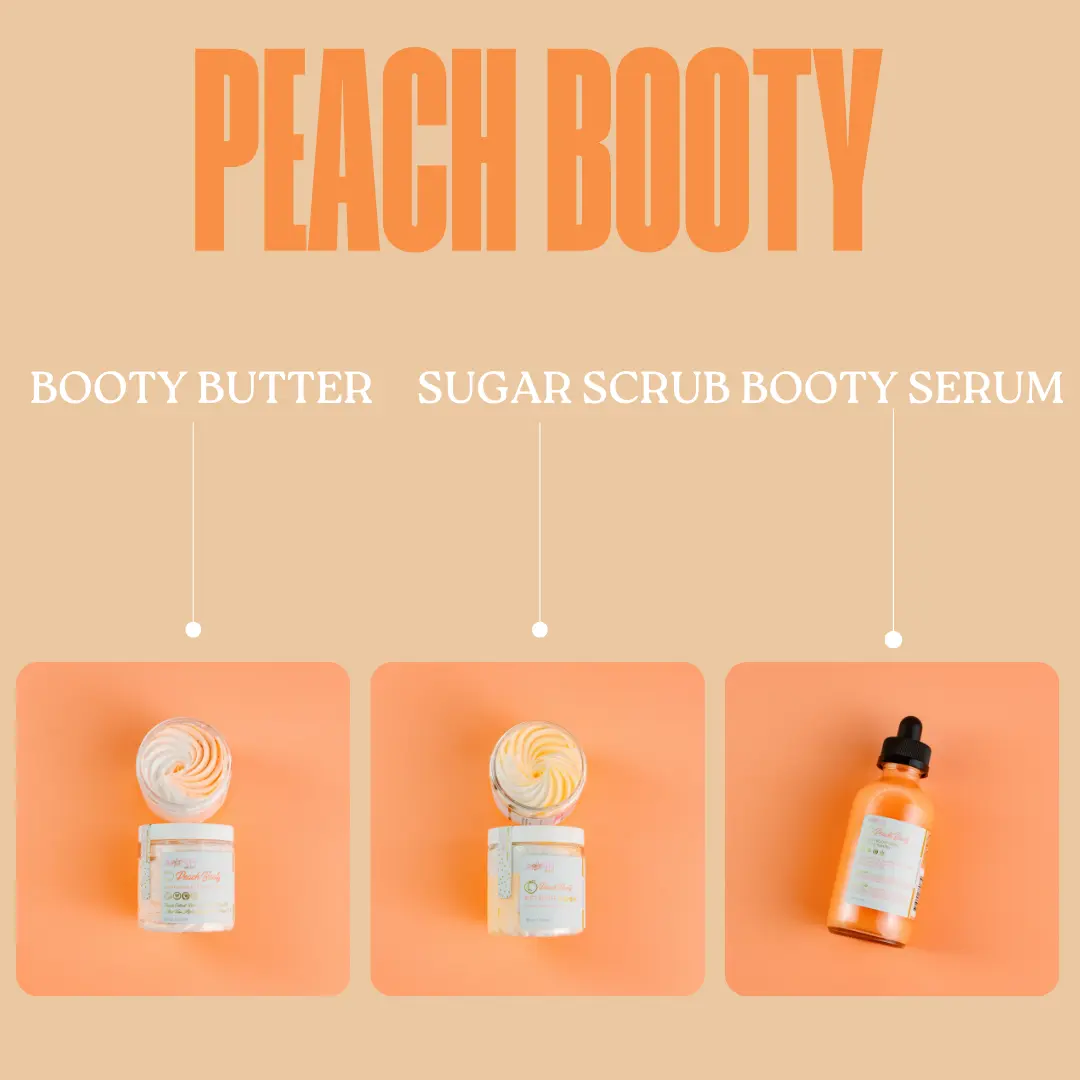 Includes: 8oz Booty Butter, 8oz Sugar Scrub, 4oz Booty Serum