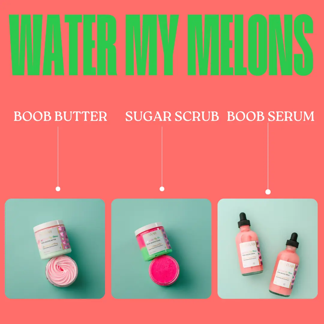 Includes: 8oz Boob Butter, 8oz Sugar Scrub, 4oz Boob Serum