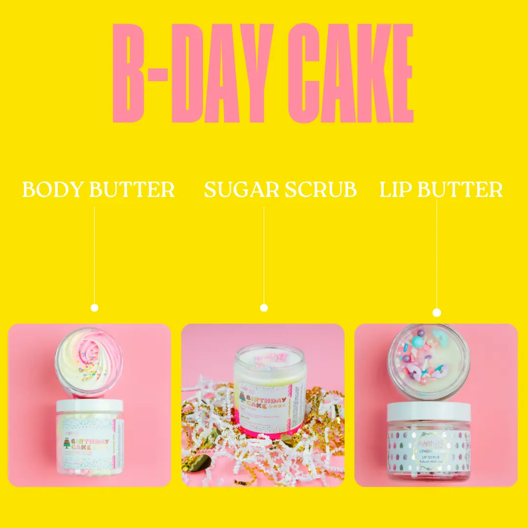 Includes: 8oz Body Butter, 8oz Sugar Scrub, 1oz Lip Butter