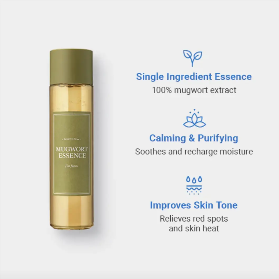 ·CALM AND SOOTHE IRRITATED SKIN - Consisting of a main ingredient, Mugwort, the soft, thin and fluid texture quickly cleanses and detox sensitive skin. As a Korean natural herb, the mugwort has been widely known for treatments and detoxing effects. This is effective for treating troubled, irritated skin. Apply the essence to areas with concerns to see instant effects. Also may be used as a facial mist, Mugwort bath, and feminine mist.