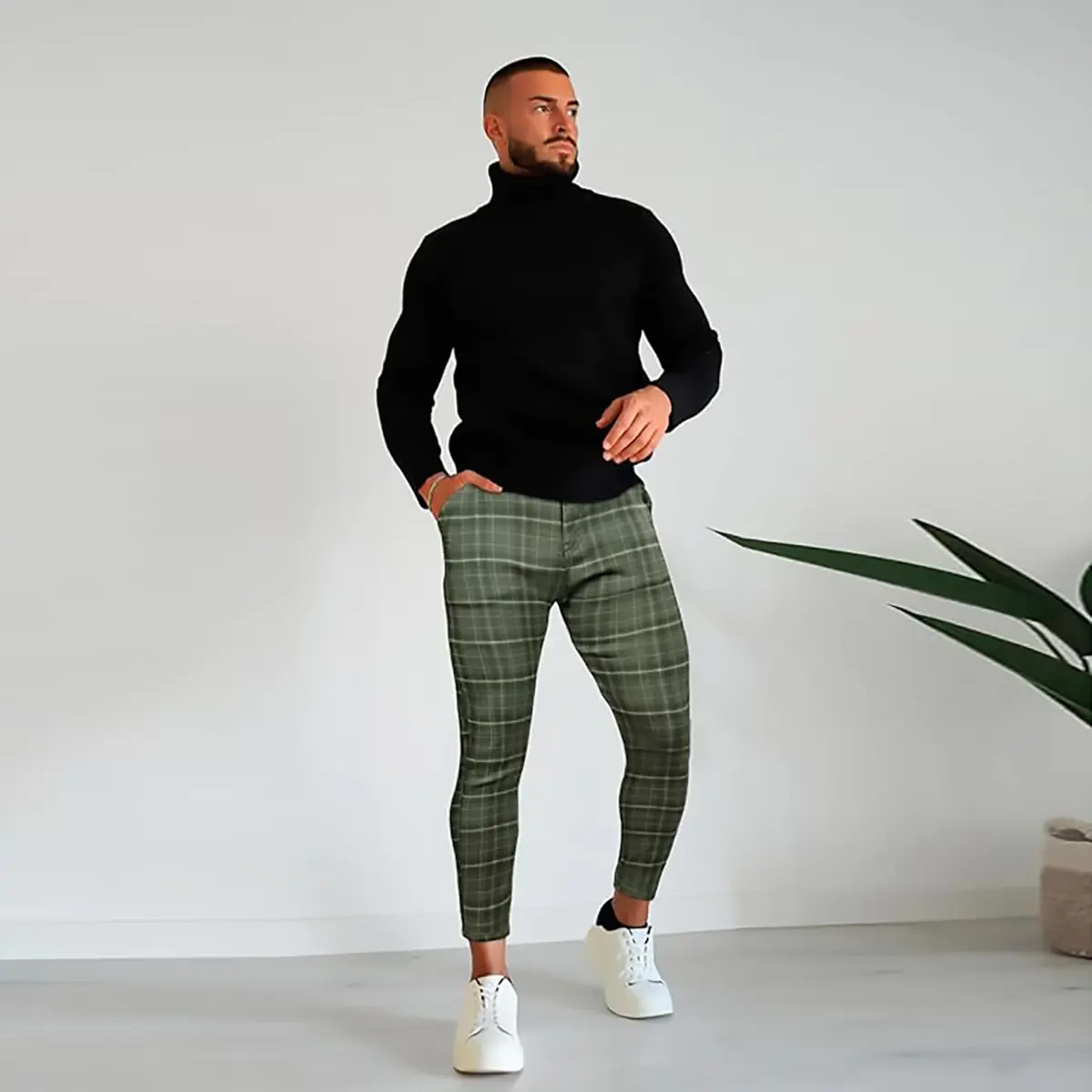 ·Skinny Fit Leg, This men's chino pants comes in a skinny leg, high waist design, please go one size up if you enjoy more relaxed and room for the leg.