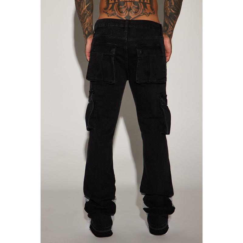 5. Carried Cargo Stacked Skinny Flared Jeans - Black