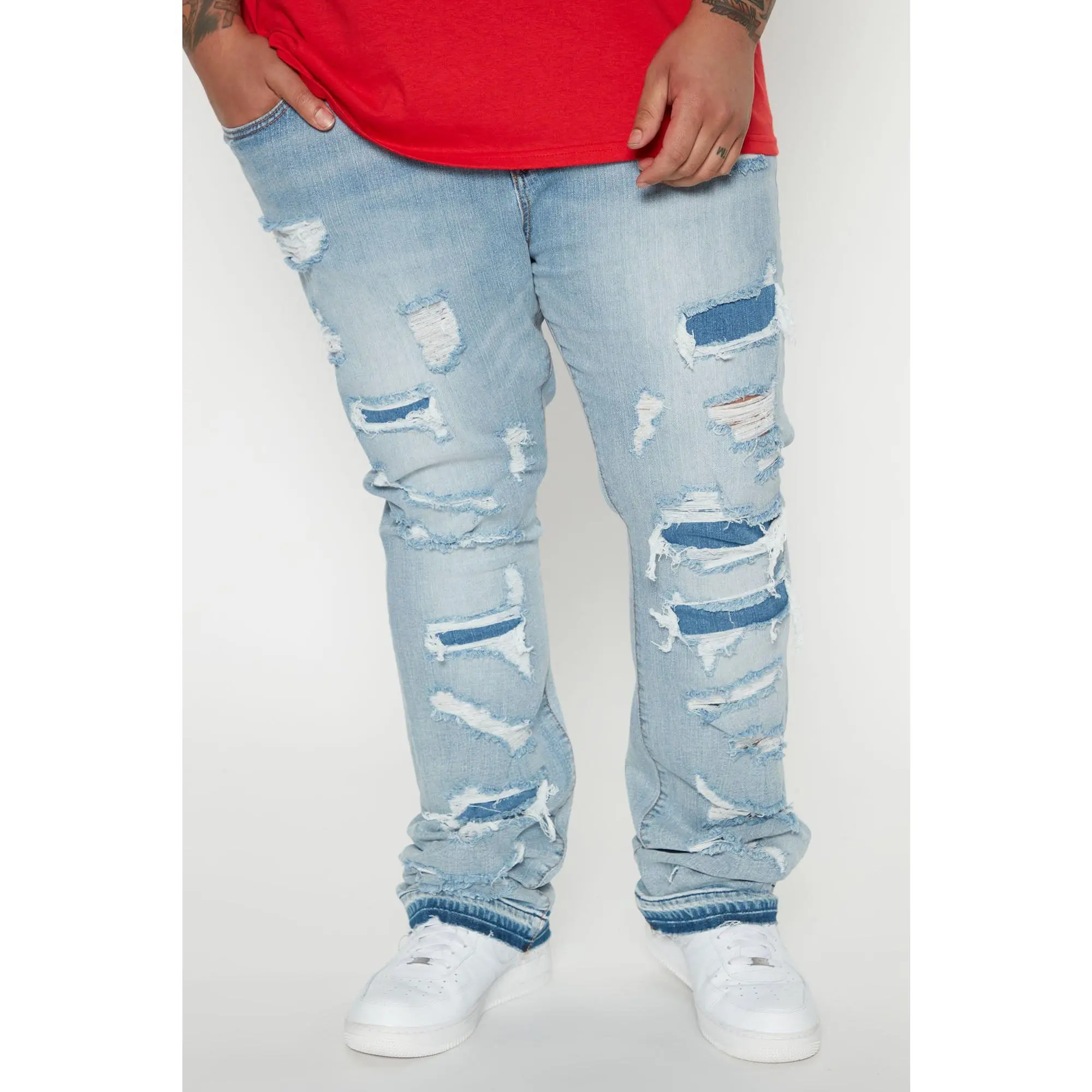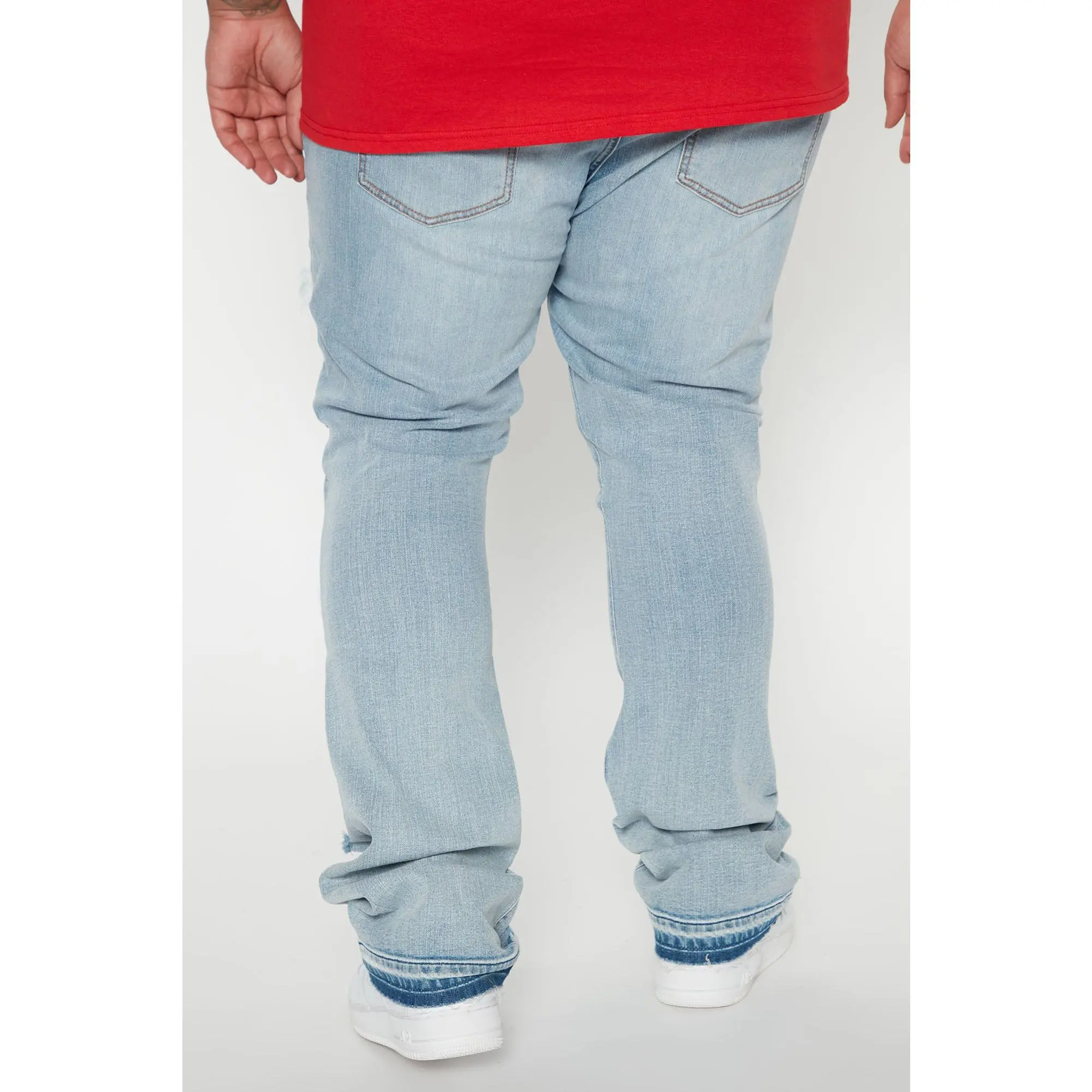 The pants are tuff they are most stacked then flared but but are tight from the waist I’m a size 32-36 150 5’6 and got 32 don’t even need a belt so would’ve or should’ve got 34 but they are tight from the knees down