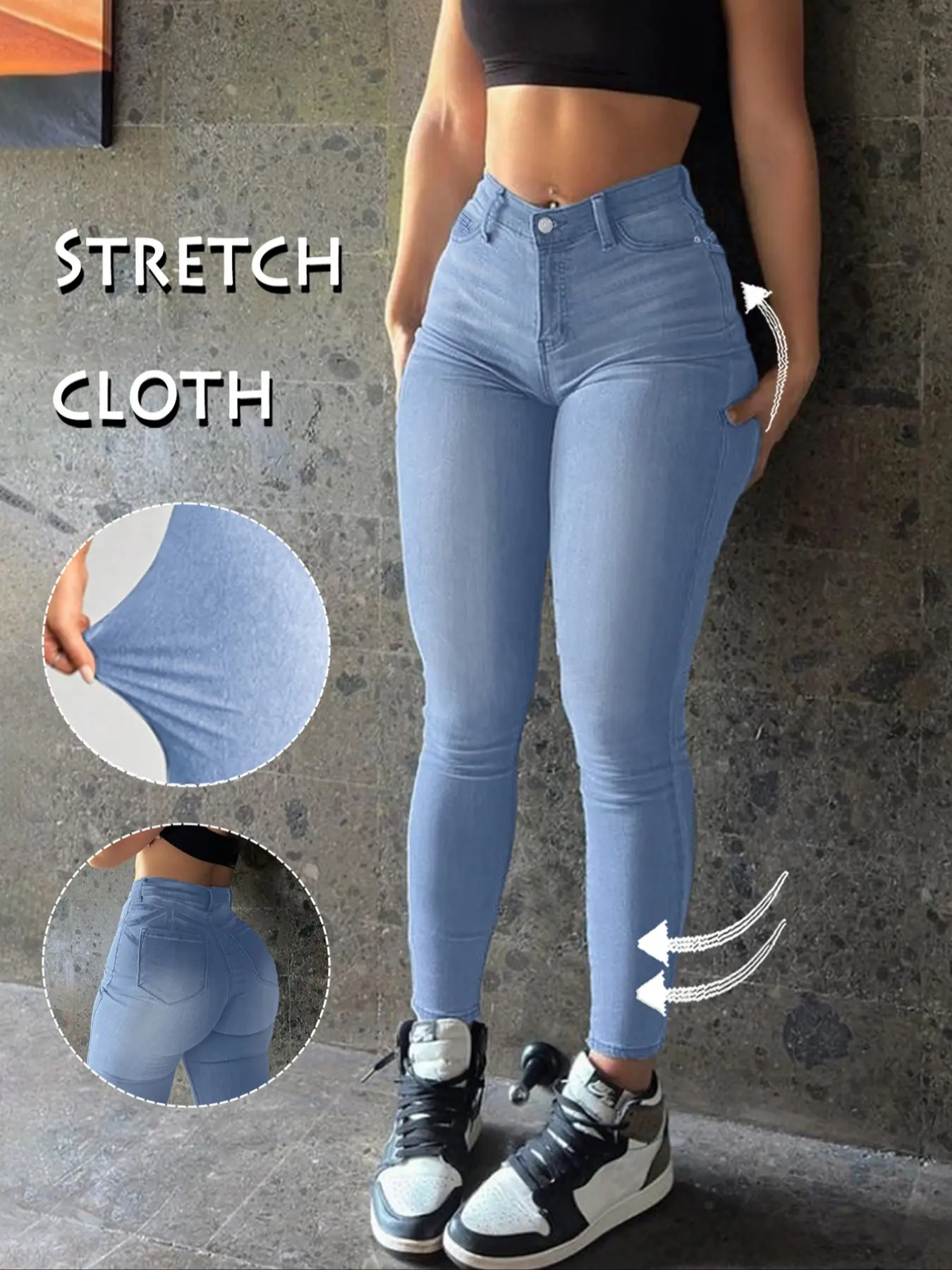 GILIPUR Y2K Women's solid color button-down High Waist skinny jeans Elastic Comfortable Washed Denim Jeans, Trendy Fashion Multi-Color New Arrival Long Trousers T-Chic
