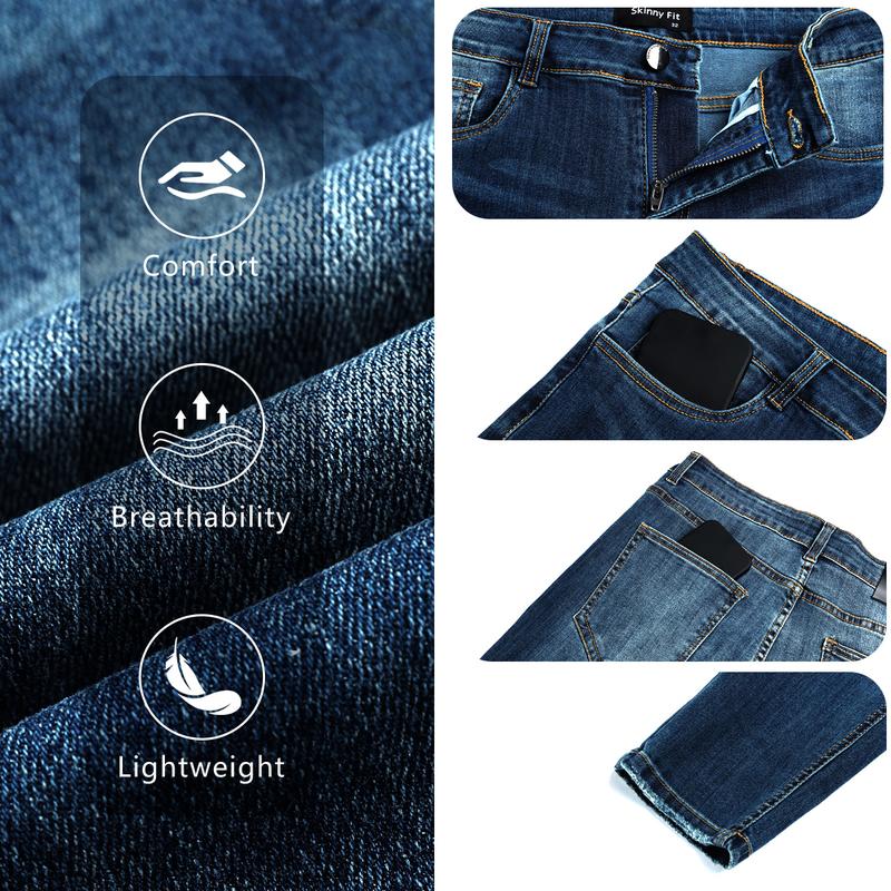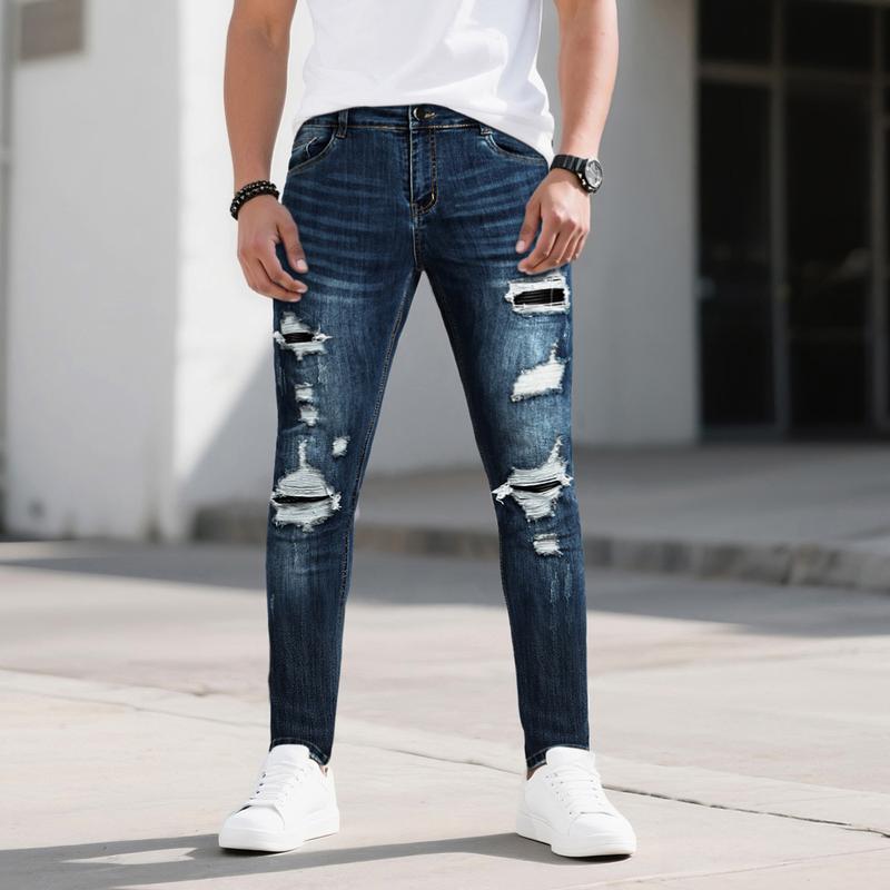Skinny Jeans for Men Fashion Slim Fit Stretch Tight Denim Pants Ripped Jeans
