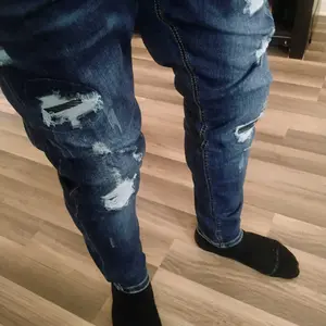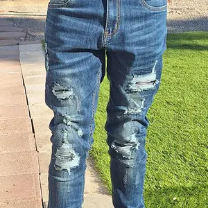 ·Ripped distressed jeans pants originating from senior fashion design, Fully meet mainstream trend.You will be more charming with our slim fit jeans in the workplace and leisure place.leather fabric patchwork is designed to be used in worn areas to make you stand out from the crowd.