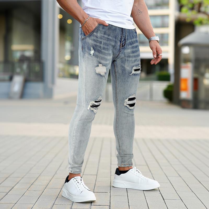 Skinny Jeans for Men Fashion Slim Fit Stretch Tight Denim Pants Ripped Jeans