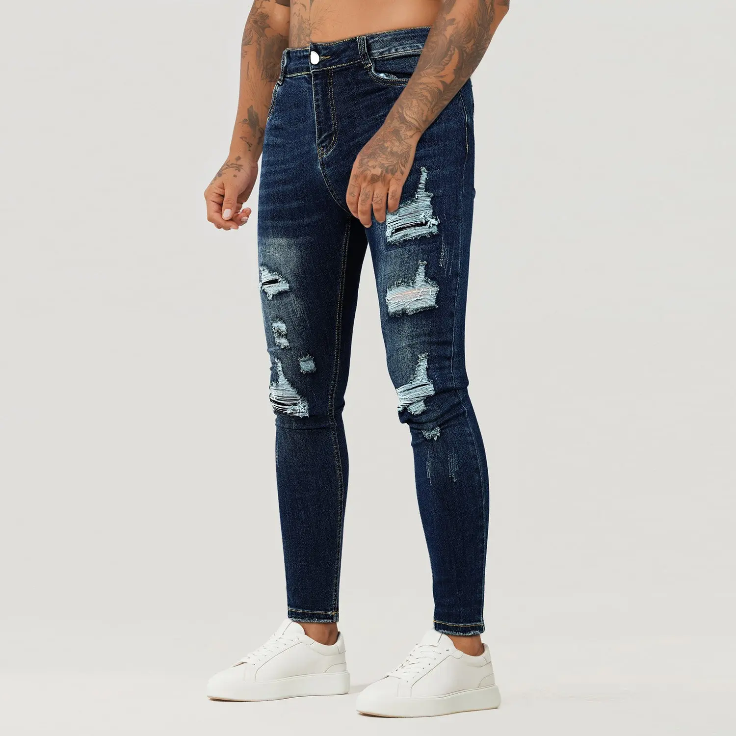 Skinny Jeans for Men Fashion Slim Fit Stretch Tight Denim Pants Ripped Jeans
