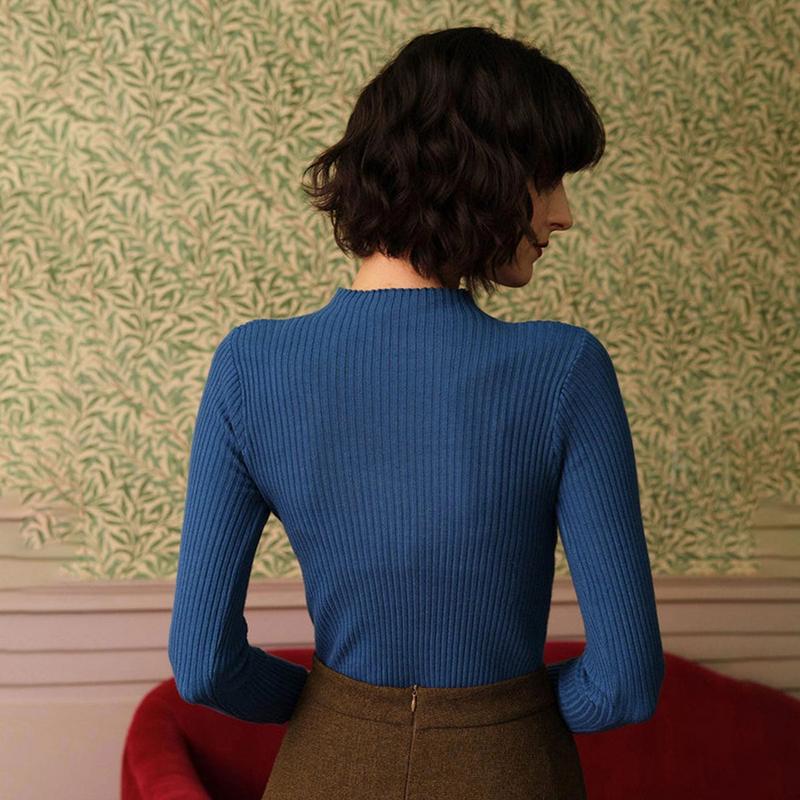 5. RIHOAS Women's Long Sleeve Skinny Elastic Sweater Pull Over Tops Fashion Underwear Lady Comfort Knitting Casual Comfortable Fall Knitwear Womenswear Basic Blue