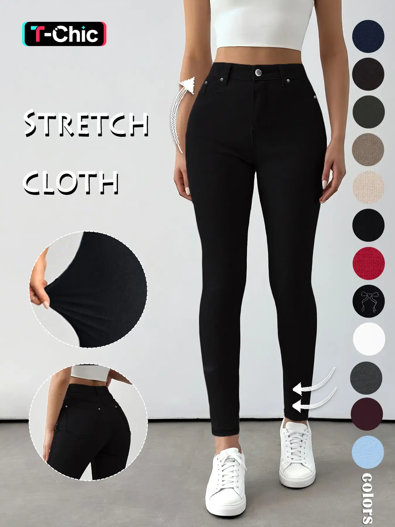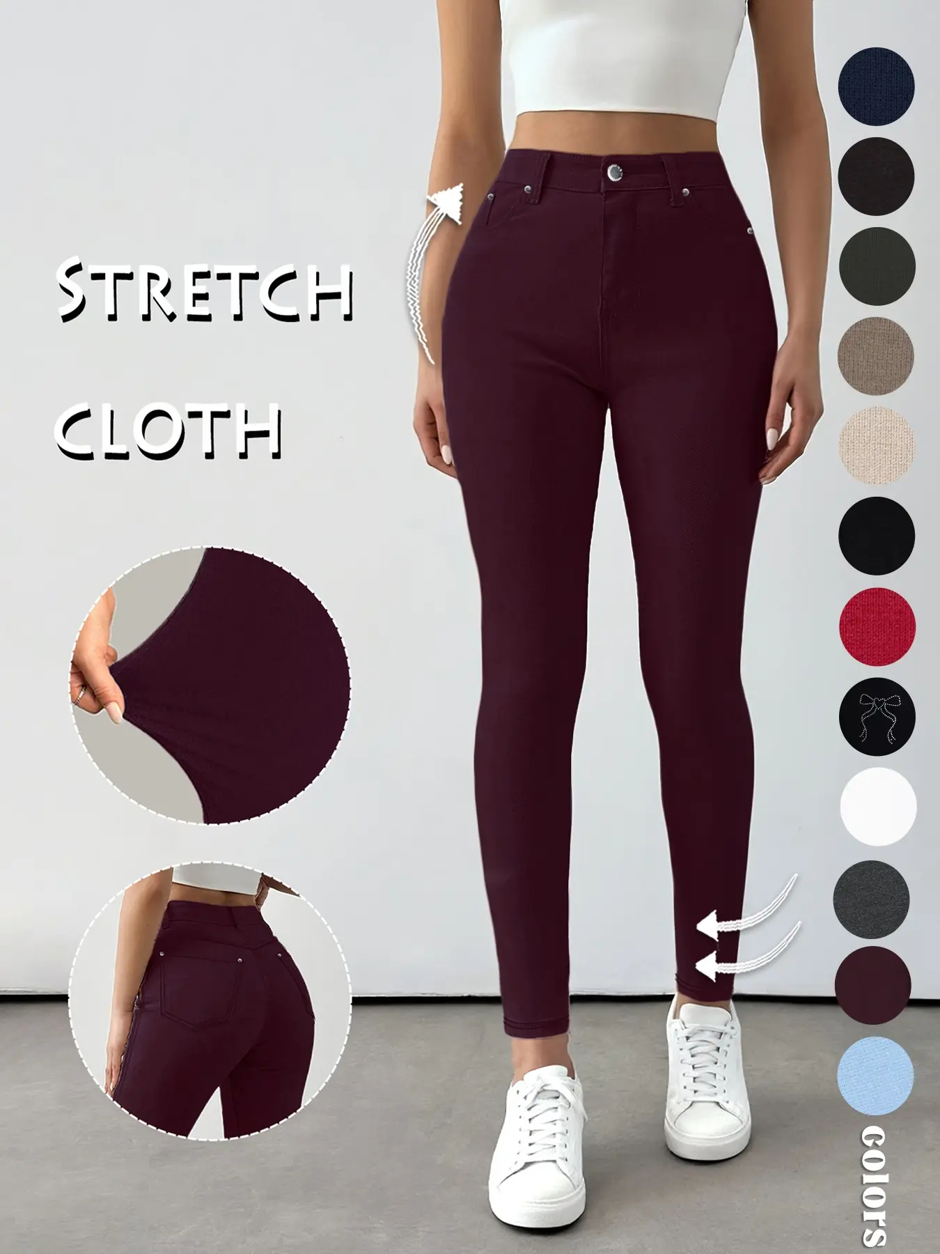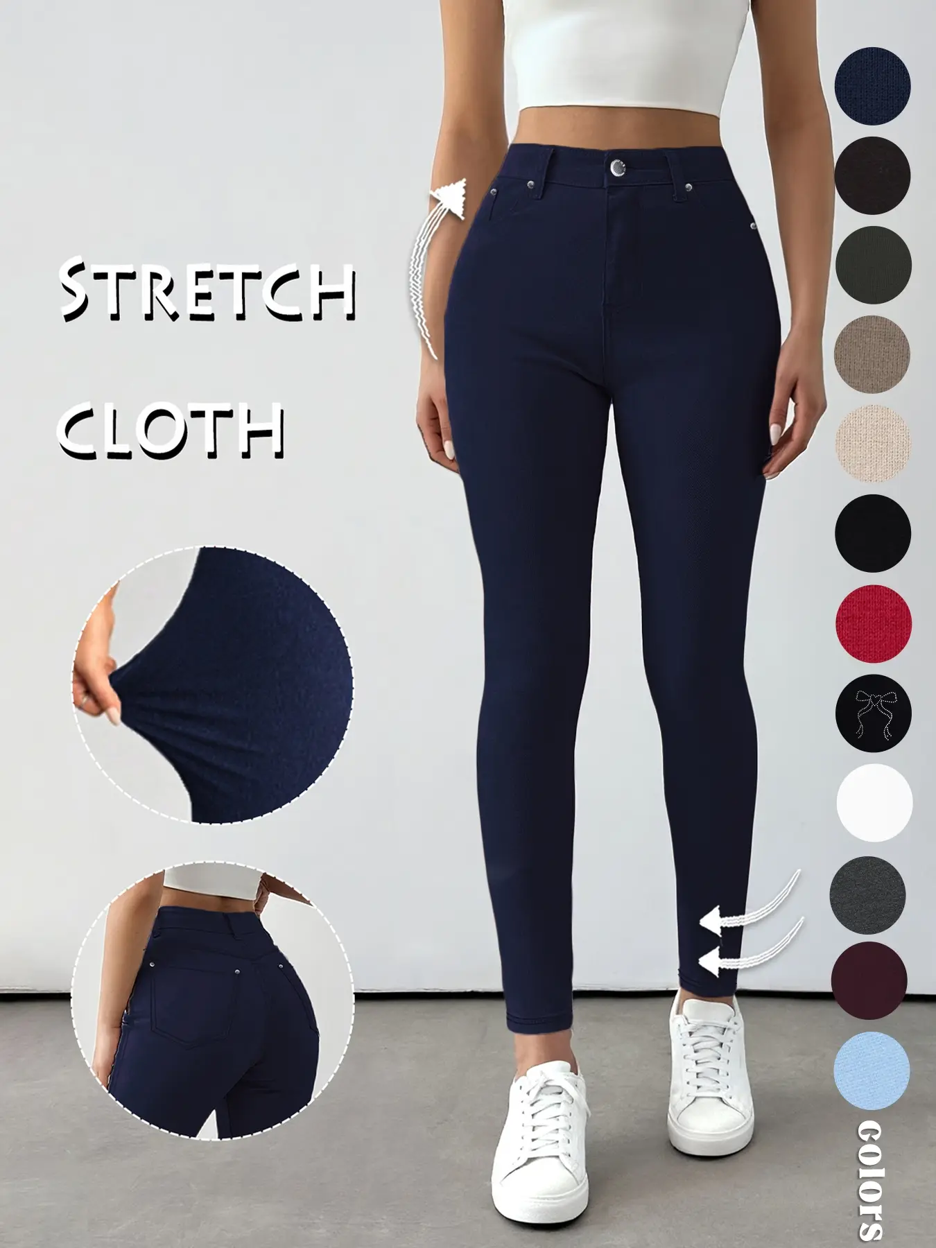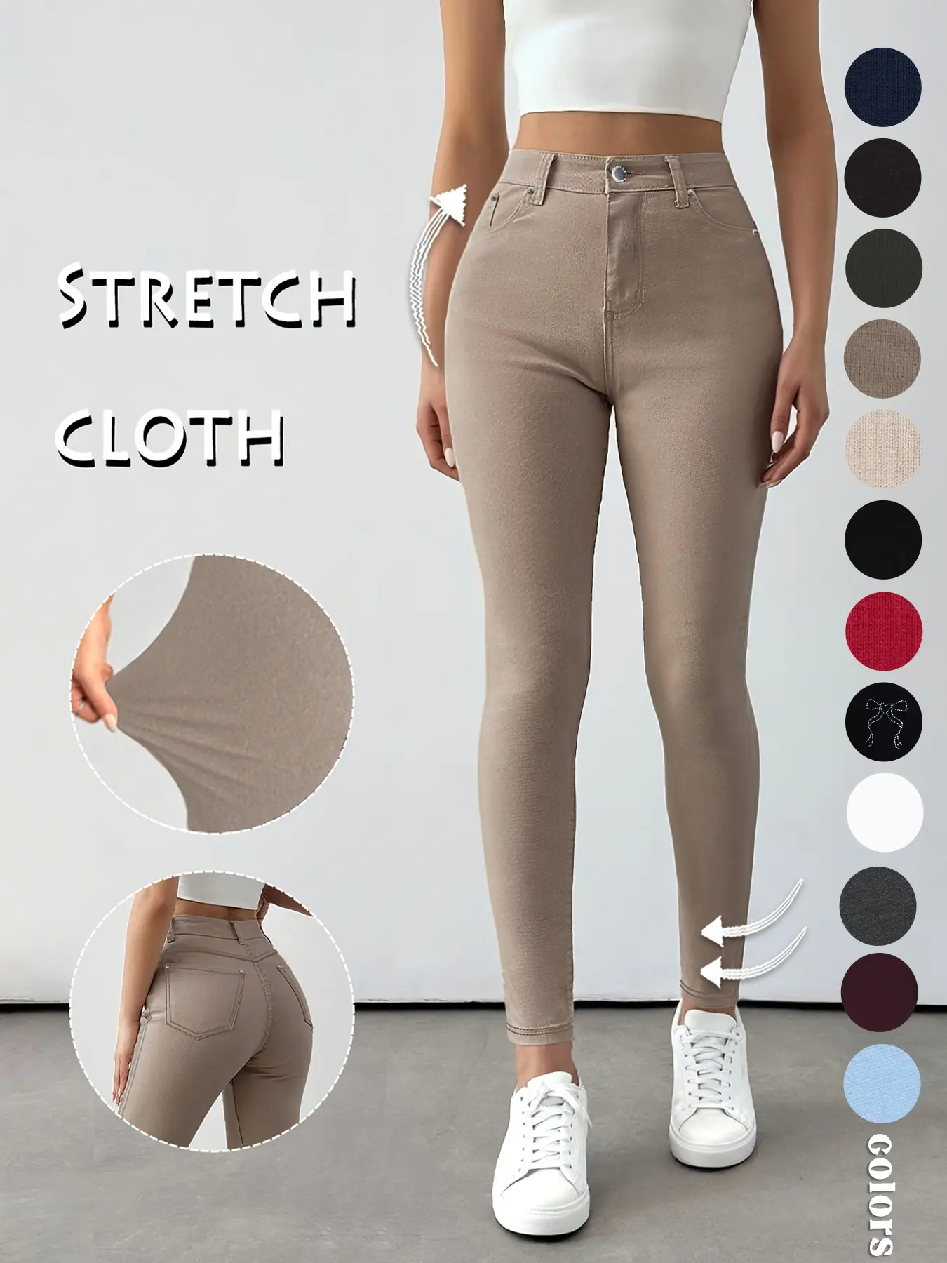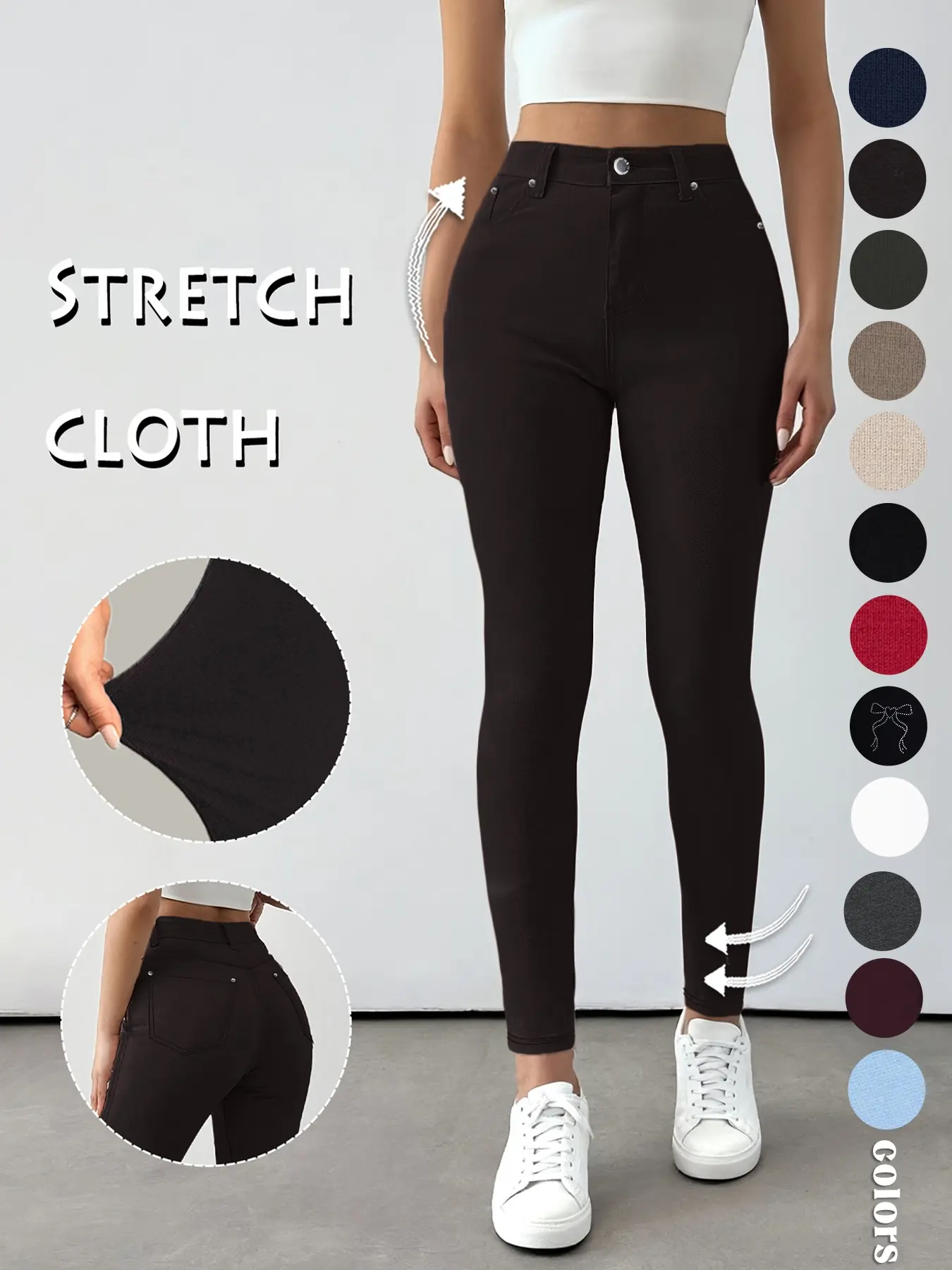 5. Women's Button-Fly Skinny Pants with Pockets, Casual, Comfy Pants for Daily Wear, Ladies' Bottoms for All Seasons (One Size Up is Recommended)