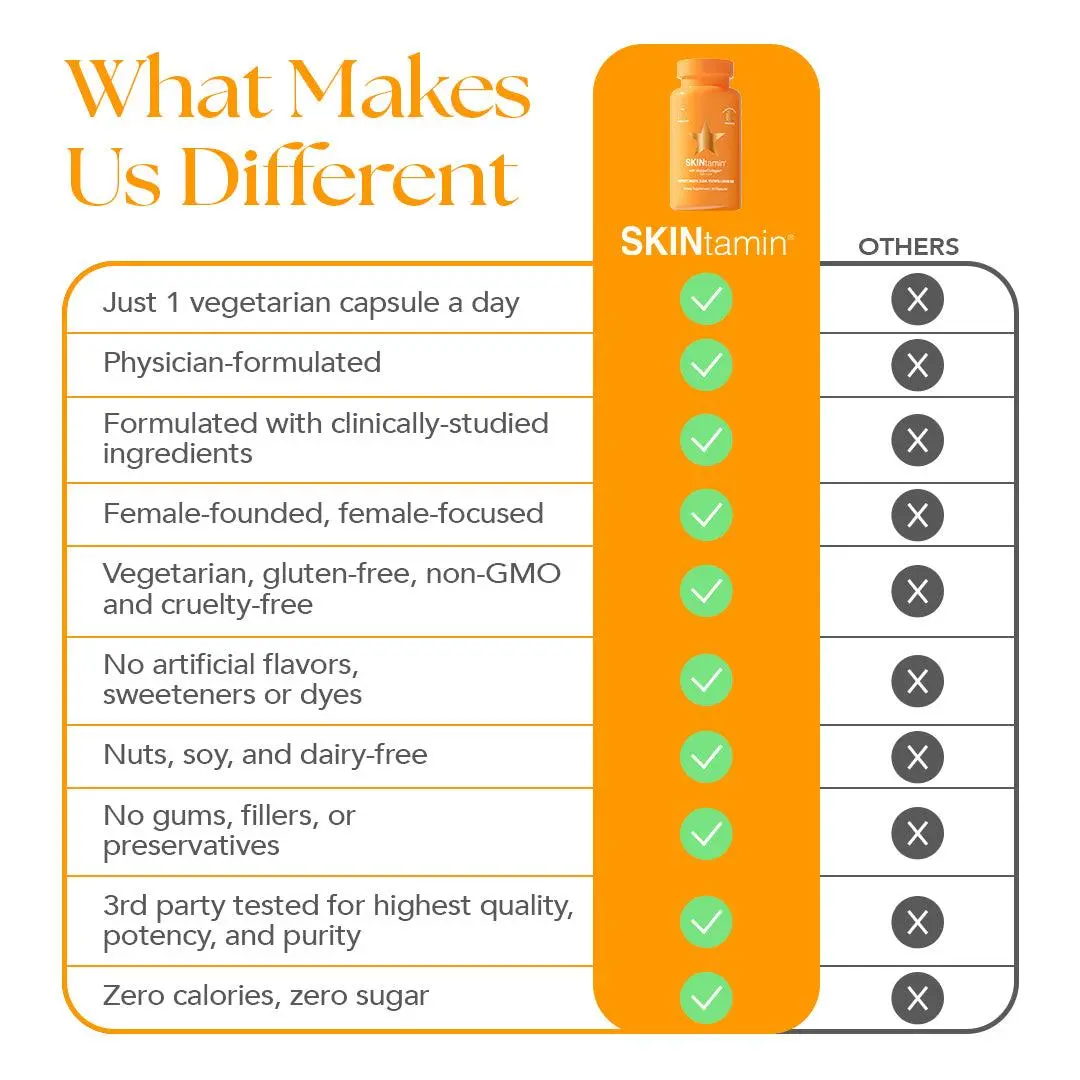 Reveal radiant, youthful skin from within with HAIRtamin SKINtamin — a once-daily, physician-formulated collagen peptides and antioxidant complex designed to support clear, smooth, and glowing skin. This clean, cruelty-free supplement features 22 skin-nourishing ingredients, including collagen types I, V & X from eggshell membrane, along with powerful botanicals, antioxidants, and essential vitamins and minerals.