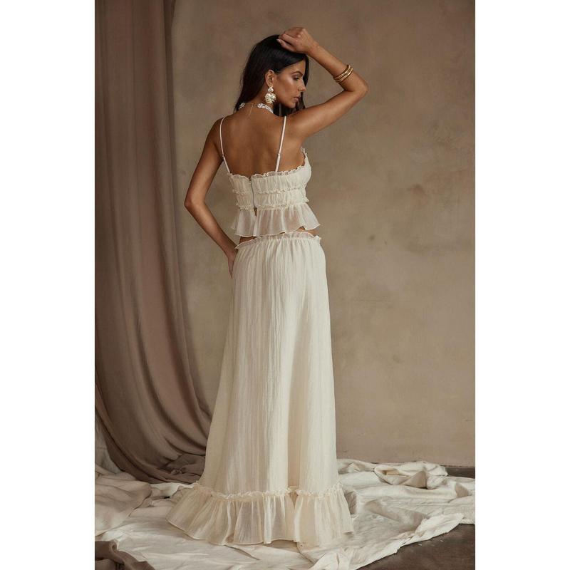 Immediately yes. The Dahlia Maxi Skirt is a must-have in every wardrobe, made from a lightweight fabric in the most dreamy baby yellow. With feminine ruffle details and an elastic faux drawstring waist, we designed this skirt to pair perfectly with the Dahlia Baby Yellow Tank for a coordinated look like no other. STYLE RECOMMENDATIONS:- Complete the look with the Dahlia Baby Yellow Tank and the Lucy White Beaded Shoulder BagPRODUCT DESCRIPTION AND MATERIALS:- baby yellow maxi skirt- lightweight and breathable material- faux drawstring at the waist- elastic waistband- lined- sheer material- ruffle detail at the bottom- 100% polyester- hand wash cold      RETURN POLICY:We offer refunds & exchanges within 15 days of delivery with tags attached & in original, unworn conditions (restrictions apply). We reserve the right to refuse returns & not honor refunds on items that have been worn, stained/soiled, laundered or altered in any way. This includes such marks as bodily fluids, deodorant stains & removed/tampered with liners. For sanitary reasons, we ask that you try on items over underwear. All sale items are final sale. Final sale items are non-returnable and non-exchange. Final sale items include: swim, jewelry, accessories, sale marked items, sale swim, and vintage garments.