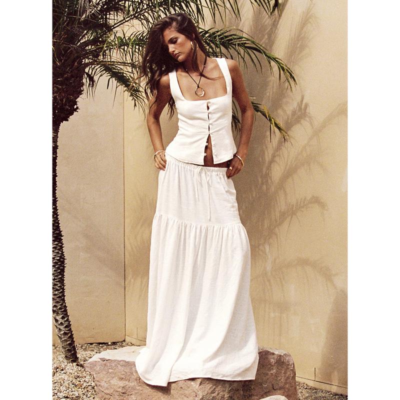 5. Tearose Linen Blend Maxi Skirt White
