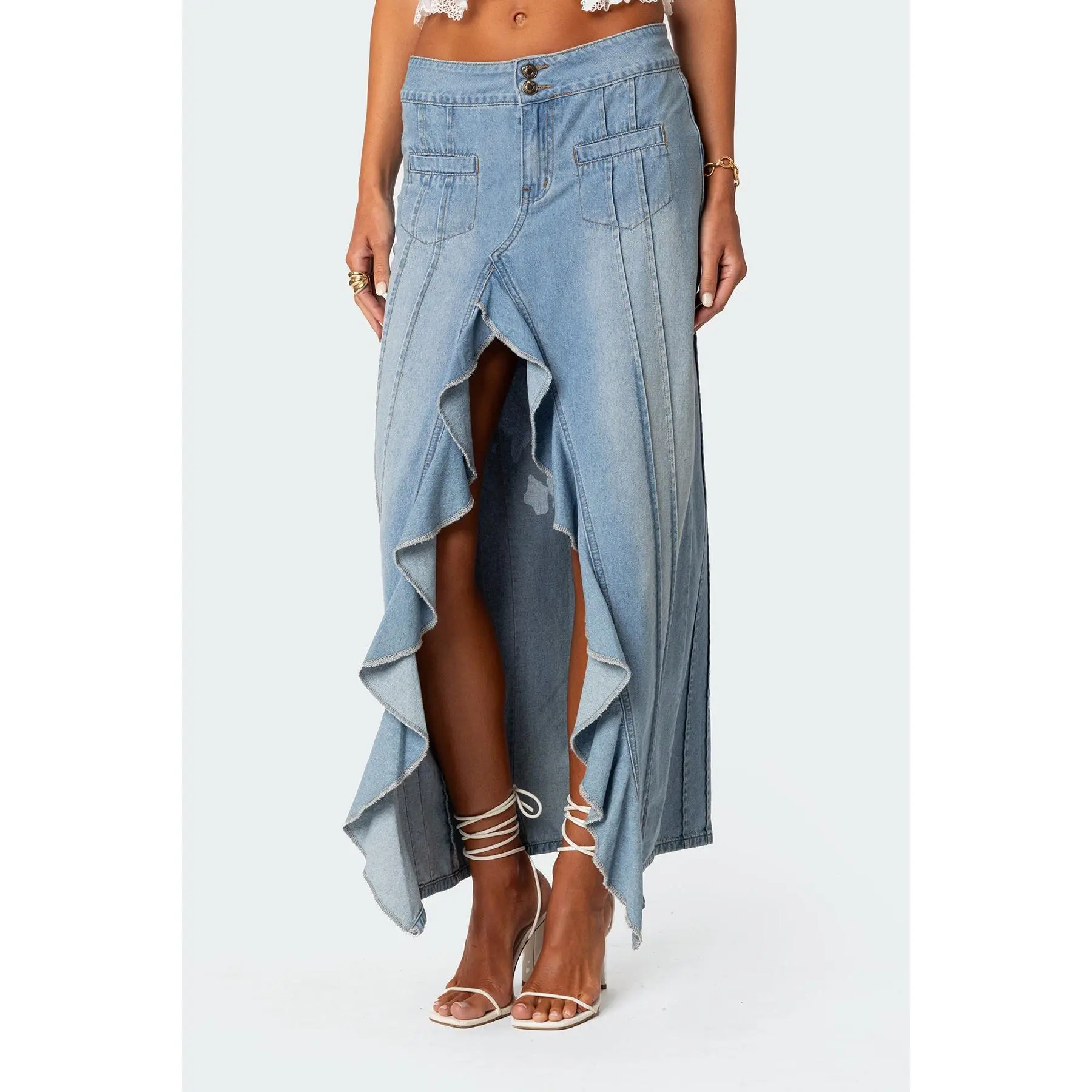 So Cute!!!! I love the this skirt. The ruffles make it so unique. Perfect for a Country Concert w/ boots. Sizing is accurate. I'm a size 6 in pants & the M fit just right. The slit is not to high at all on me as I've seen some reviews stating it is. Don't hesitate buying this!!!