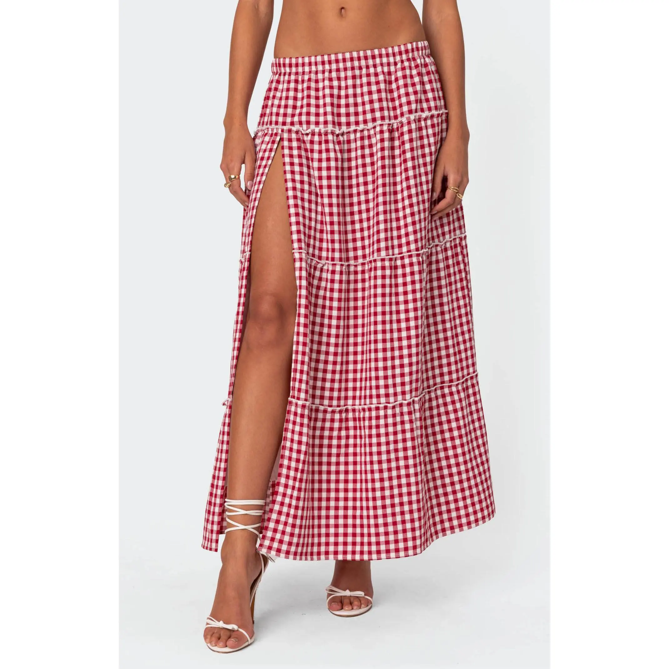Edikted Women's Gingham Side Slit Tiered Maxi Skirt - Multicolor
