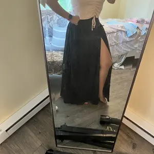 Fits awkwardly on me. I got a xl but it ran smaller than that. There’s a built in panty thing so you can’t hike the skirt up — which sucks because the bottom of the skirt drags against the ground. It’s so big on me that you can’t even tell there’s a slit in the side…