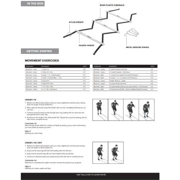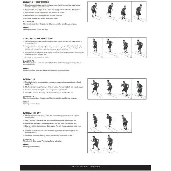 Peak performance can only come from repetition. Improve quickness through accelerated foot strike and lift frequency. The SKLZ Quick Ladder develops the core skills necessary to enhance balance, rhythm and body control.