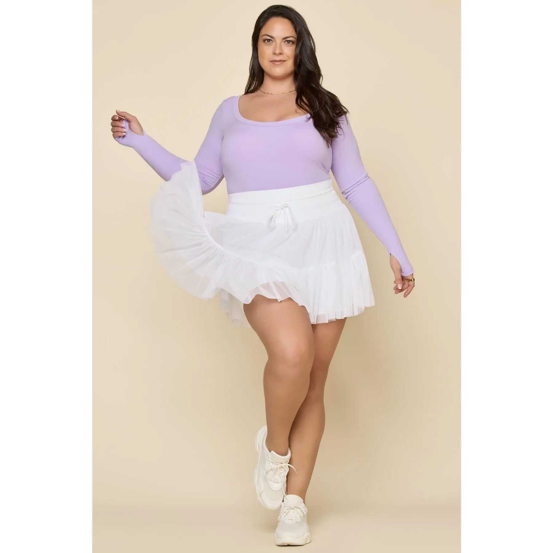 The perfect skirt for plus size girlies! It truly does not ride up. No chub rub at all. Does not show the butt cheeks. White does not show underwear prints. I am now obsessed with pop fit, I would love to collab!!!