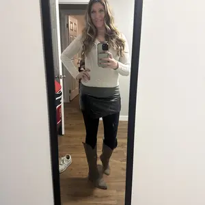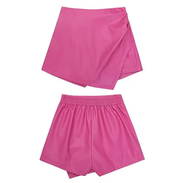 These leather shorts feature high waist, elastic back, ruched side, asymmetrical hem. The womens skorts are made of slight stretch PU leather which is perfect for spring, summer, fall, and winter.