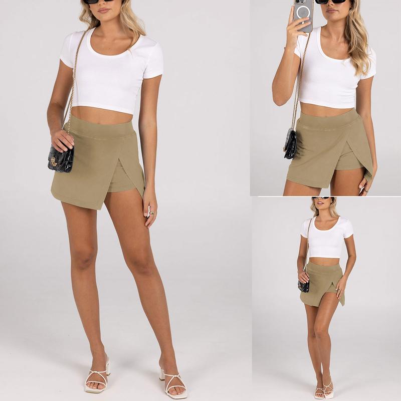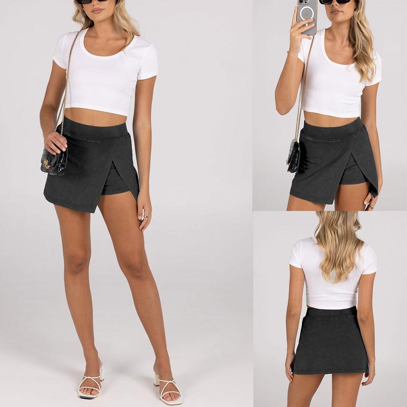 ·Design: Hot shot mini skort features with high waisted, front split side, elastic waistband, high-rise fit, show your bodies curvy and silhouette, easy to dress on