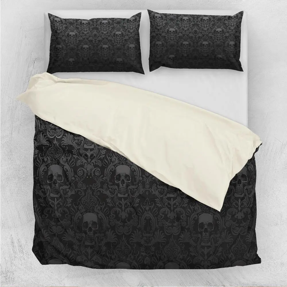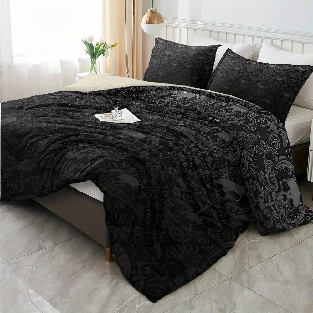 Skull & Floral Pattern Bedding Set, Including 1 Count Bedspread & Pillowcase without Filler, Soft Comfortable Bedding Set for Home Bedroom Duvet Cover Set