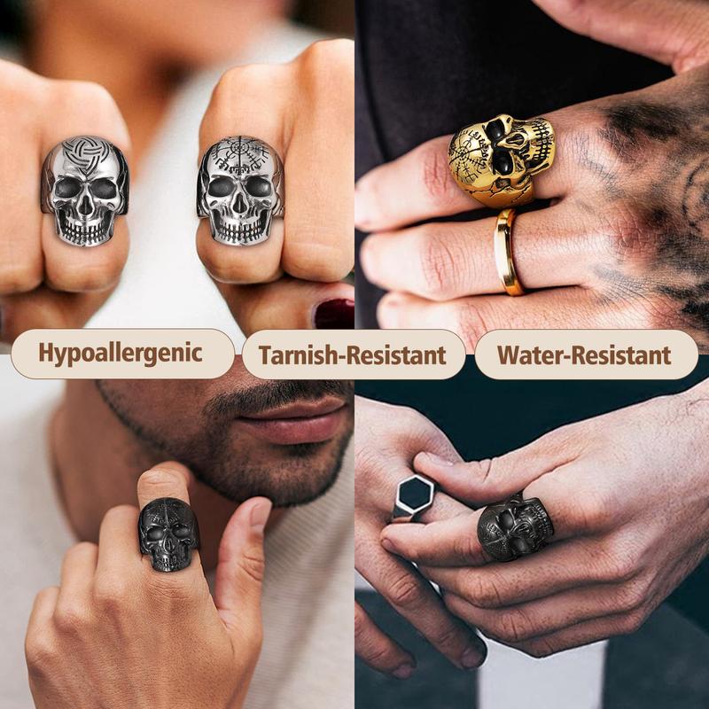 5. FindChic Vintage Skull Head Ring, Cool Men Boys Gothic Sigent Ring Punk Biker Finger Ring For Women Men Girlfriend Boyfriend