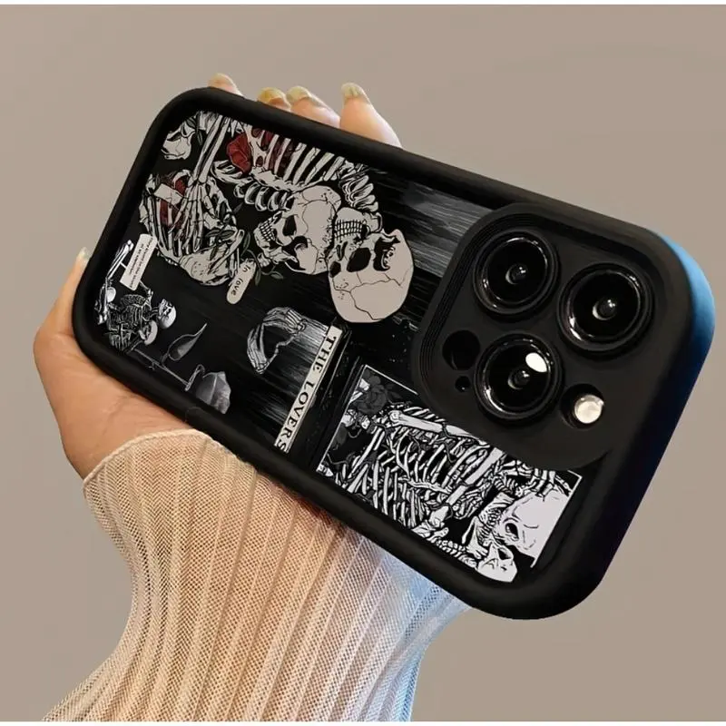 Skull Pattern Case Suitable for IPhone17 11 12 13 14 15 16 Pro Max Air Plus Shockproof Full Camera Protection Durable Slim Silicone Cover Gifts for Women Men Girls Boys