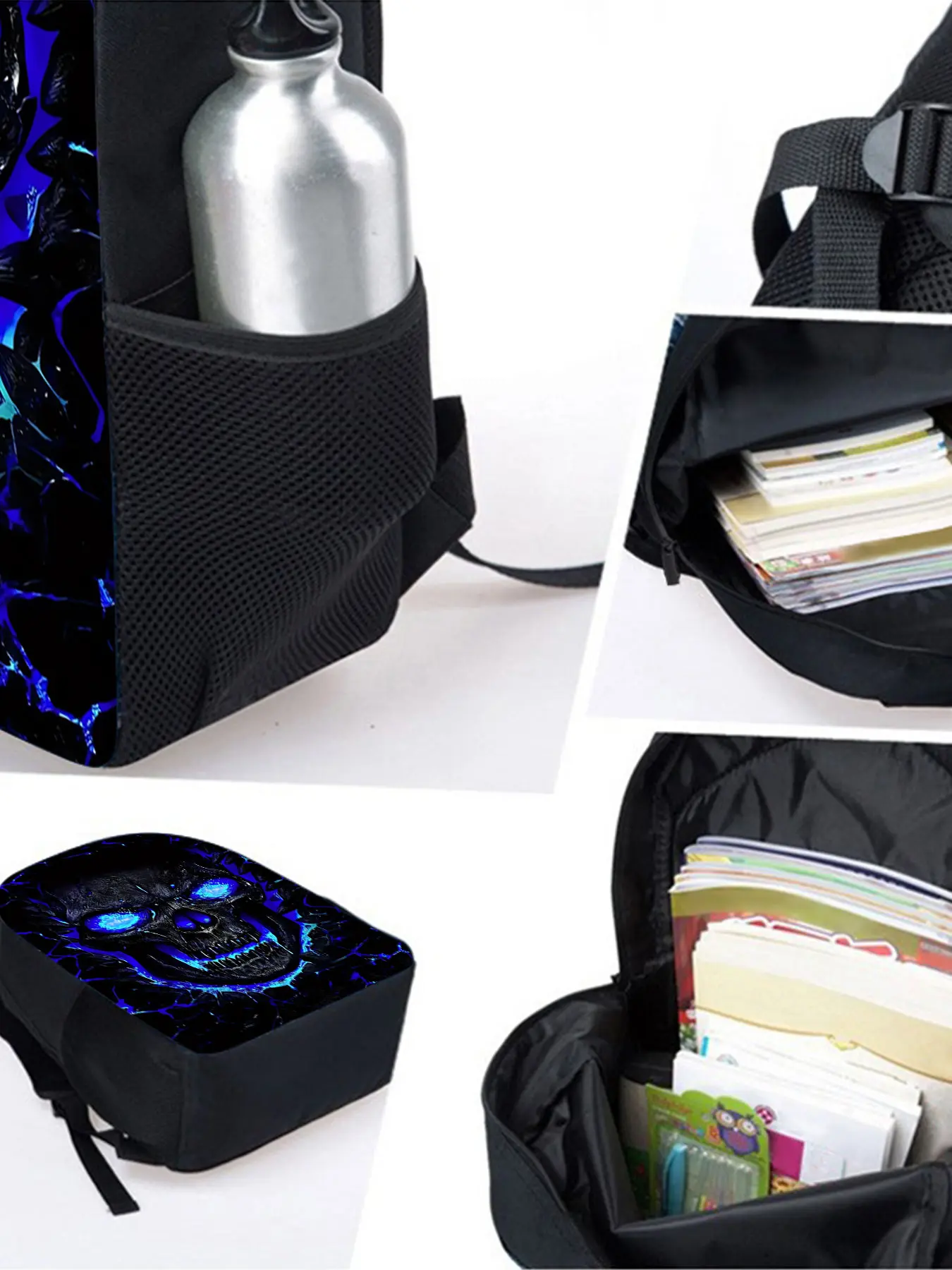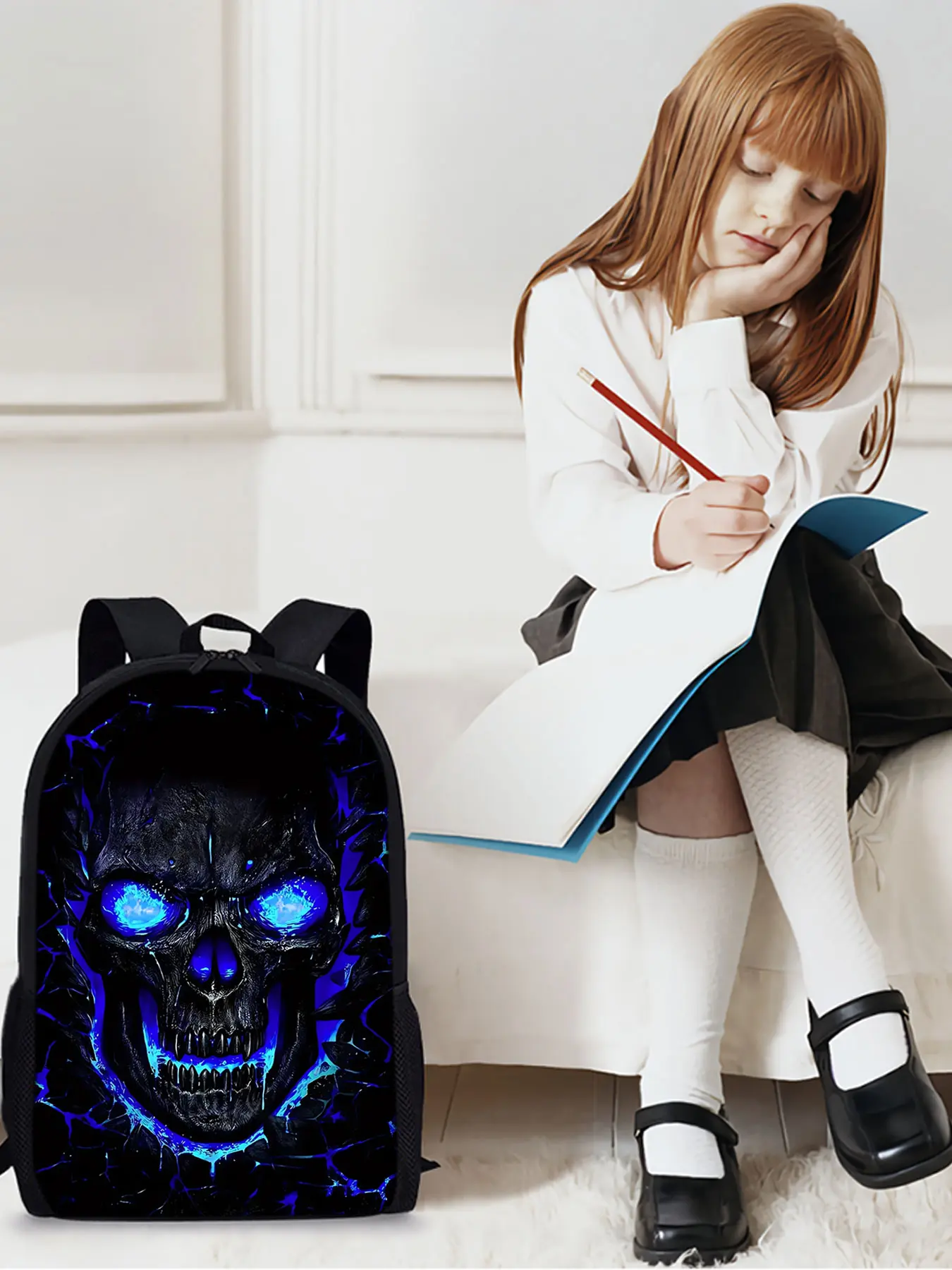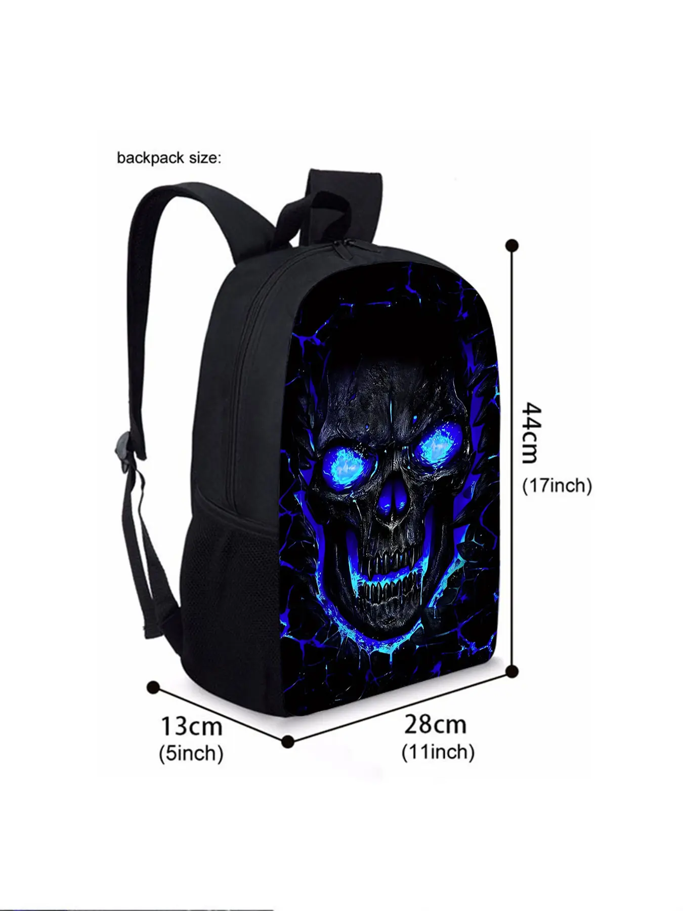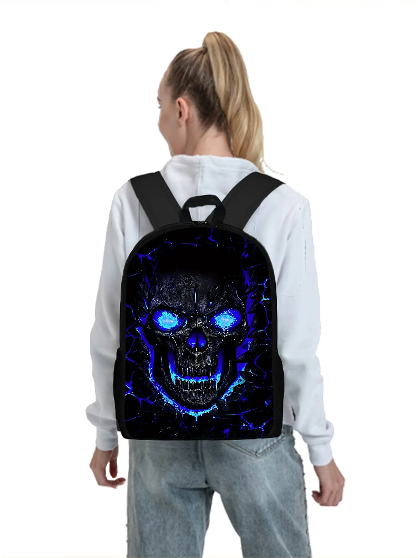 Skull pattern printed 17 inch height 44 cm single layer Led backpack