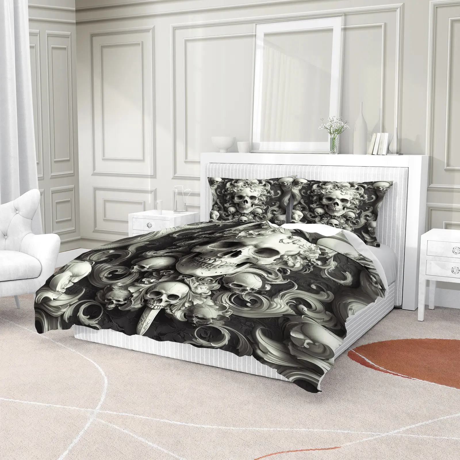 【Unique Pattern】: Featuring a skull pattern, this bedding set stands out from typical designs, adding a distinctive flair to your bedroom.