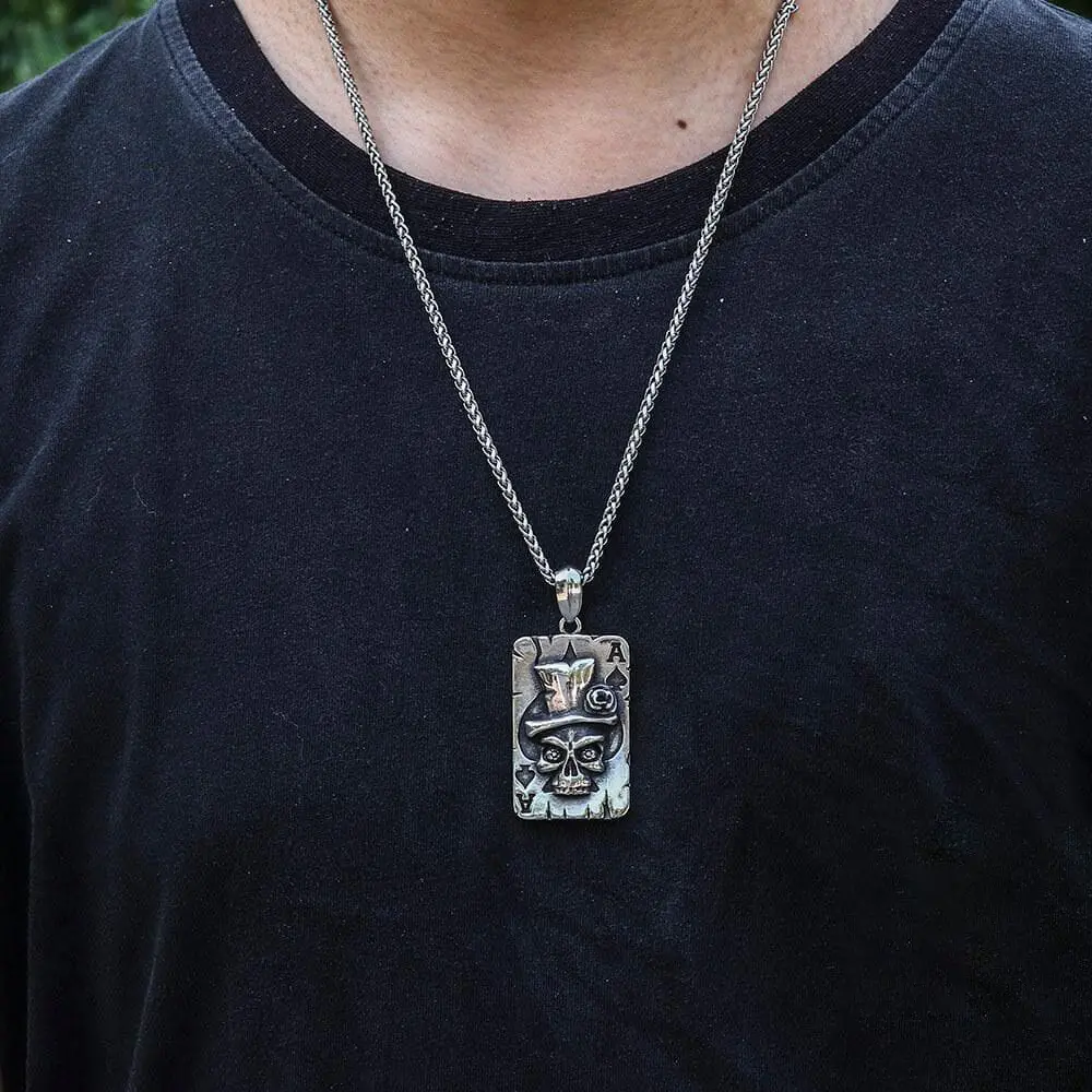 ·The Ace of Spades is traditionally the highest and most valued card in the deck of playing cards in English-speaking countries. The actual value of the card varies from game to game. Both the front and back of the pendant are delicately carved with skulls. The details are in place, giving the pendant a super texture. This pendant has an extremely distinct design and is sure to grab attention. Get yours today!