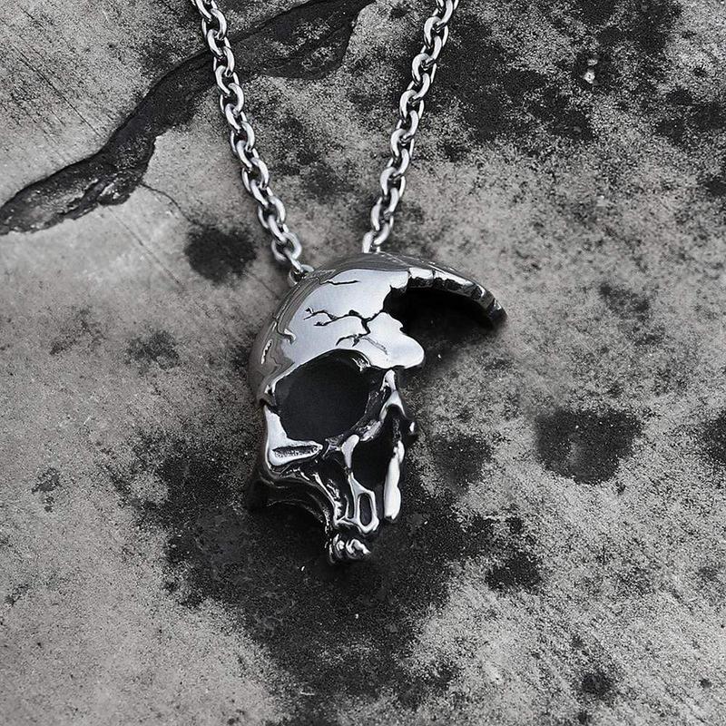 ·Unique Gothic Skull Pendants: Our damaged half-face pendants is a classic Hardy-style accessory that is perfect for bikers or general badass people. The skull symbolizes eternity and rebirth, and this pendant seems to speak of its ups and downs. It's suitable for all genders.