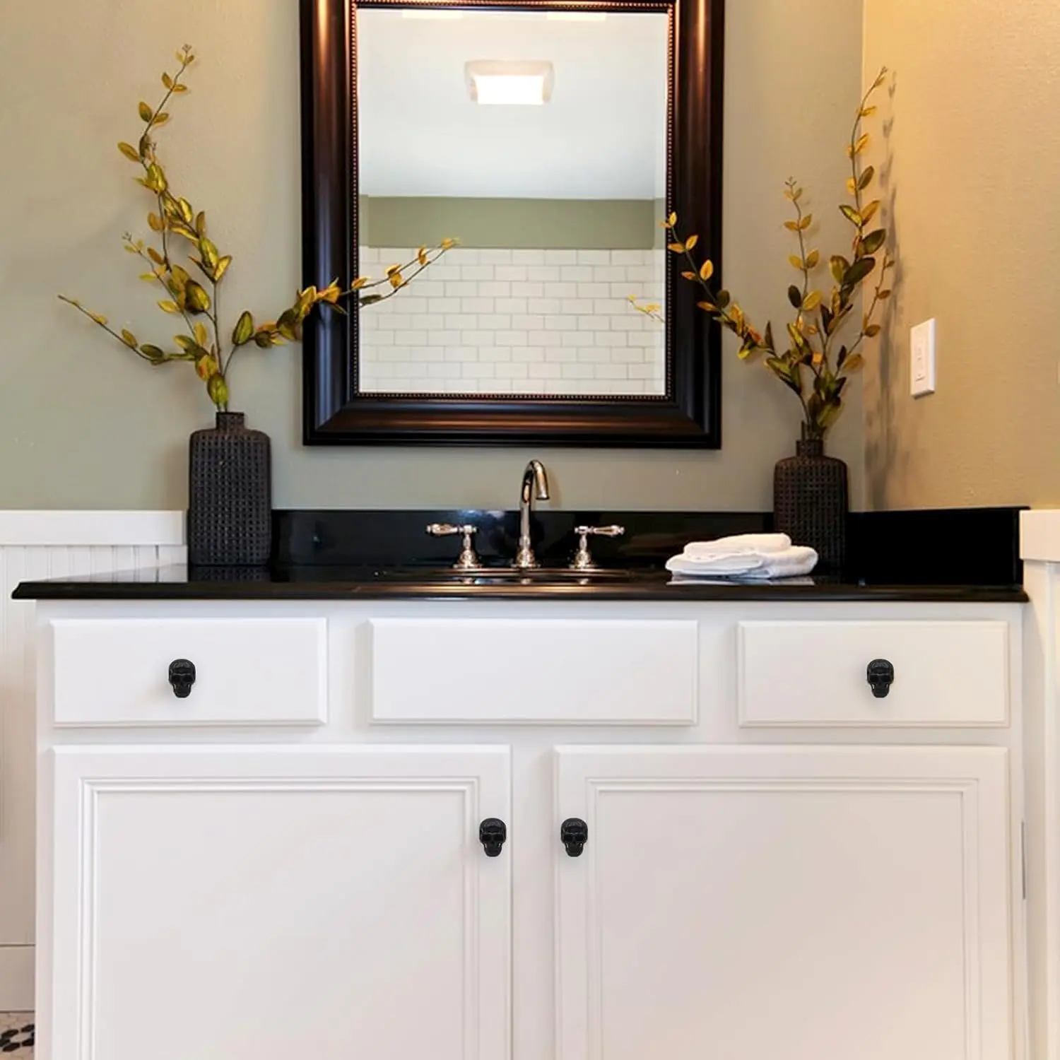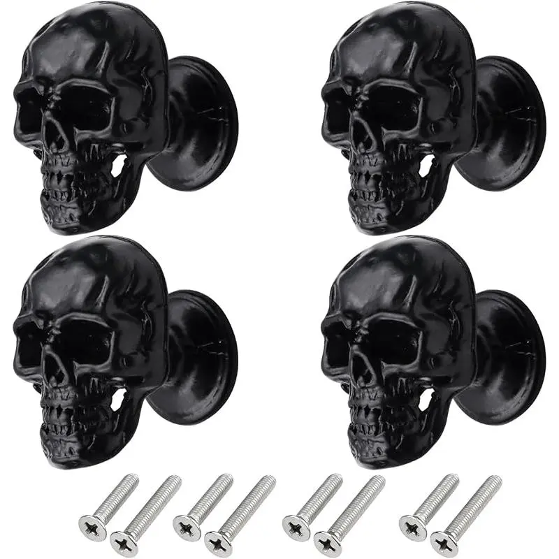 Size: L*W*H 35mm * 2.5mm * 30mm/ 1.36*1*1.15 inch.Two Types Of Screws length: 0.8-1 inch Can Be Used With Wood Plank Thick Enough.Skull knobs are made of high quality Zinc alloy, Heavy-duty Manufacturing, Electroplating Surface Treatment to Ensure Quality Life.Unique Skull Handle Design, Bring You A Unique Surprise, Decorate Your Home And Office Full Of Personality.Can Be Widely Used As This handle is suitable for drawers, closets, cabinets, dressers, wardrobes, bookcases, etc., to bring unique decoration to your furniture.If You Have Any Dissatisfaction After Receiving Our Cabinet Knobs, Please Feel Free To Contact Us. We Will Replace It For You Immediately, So You Can Buy With Confidence.