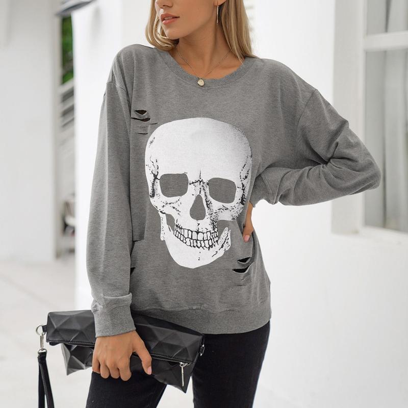 ·Features: This halloween skull graphic sweatshirt features white skull or other different patterns on the center, loose-fitting design and hole design. The casual and slouchy street style makes you look like a cool girl.