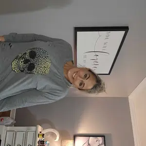 I ordered one size up because it is a sweatshirt and I like my sweatshirts a little bit big. Perfect for Halloween or anytime.